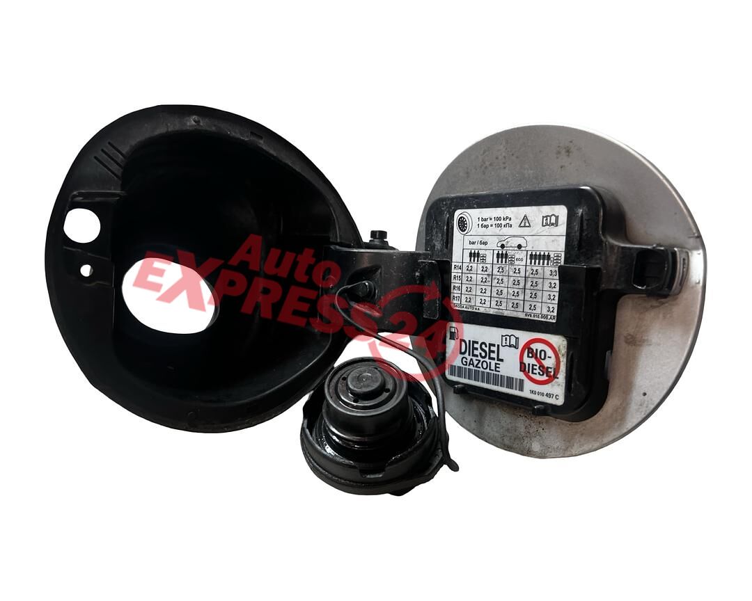 Víko nádrže klapka pro plnění palivem z vozu Škoda Fabia 3 kombi r.v. 2017 stříbrná metalíza LA7W 9156 8E8E