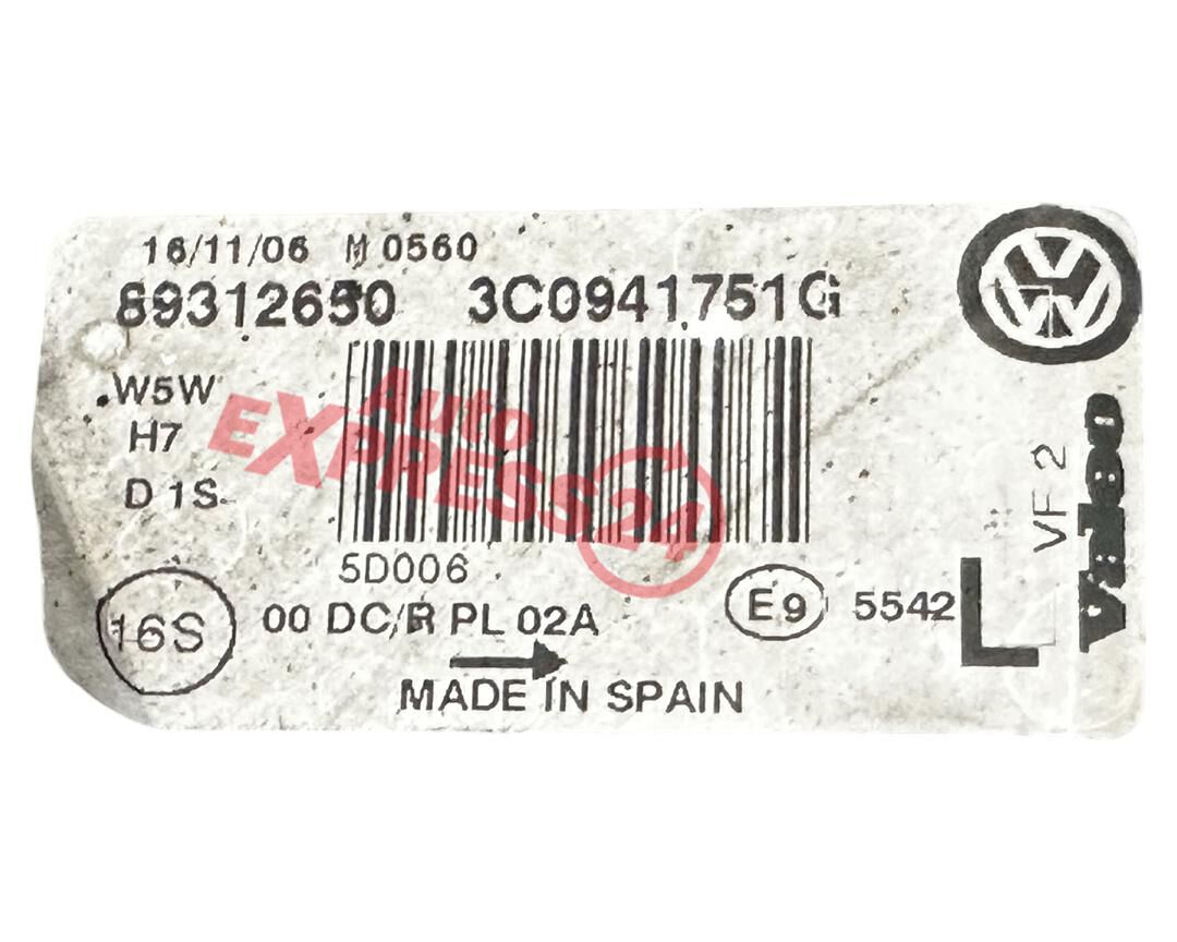 VW Passat B6 kombi r.v. 2007 levé přední světlo xenon 3C0941751G Valeo 16/11/05