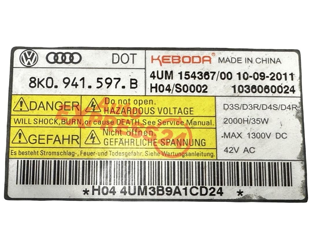VW Passat B7 kombi r.v. 2012 levé přední světlo xenon 3AB941043 jednotky 8K0941597B 3D0941329C
