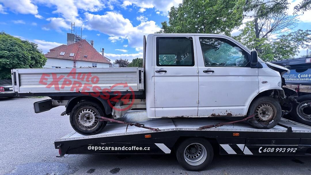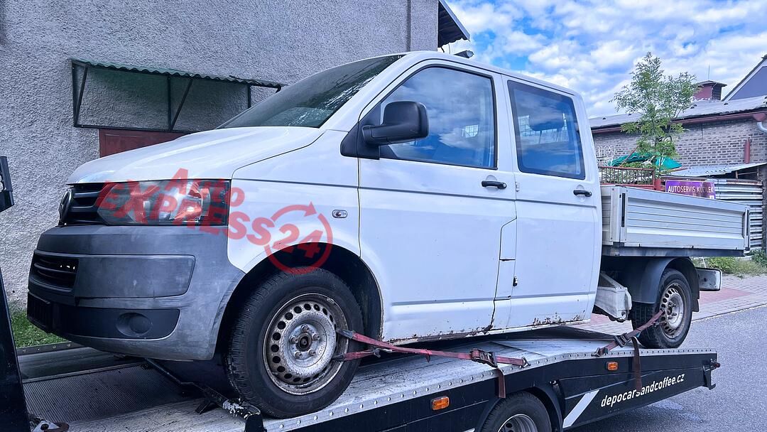 Vůz na náhradní díly VW Transporter T5 7J facelift r.v. 2011 dvoukabina bílá barva kód barvy LB9A naftový motor 2.0TDI 103KW commonrail s DPF kód motoru CAA CAAC šestistupňová manuální převodovka kód převodovky KUP
