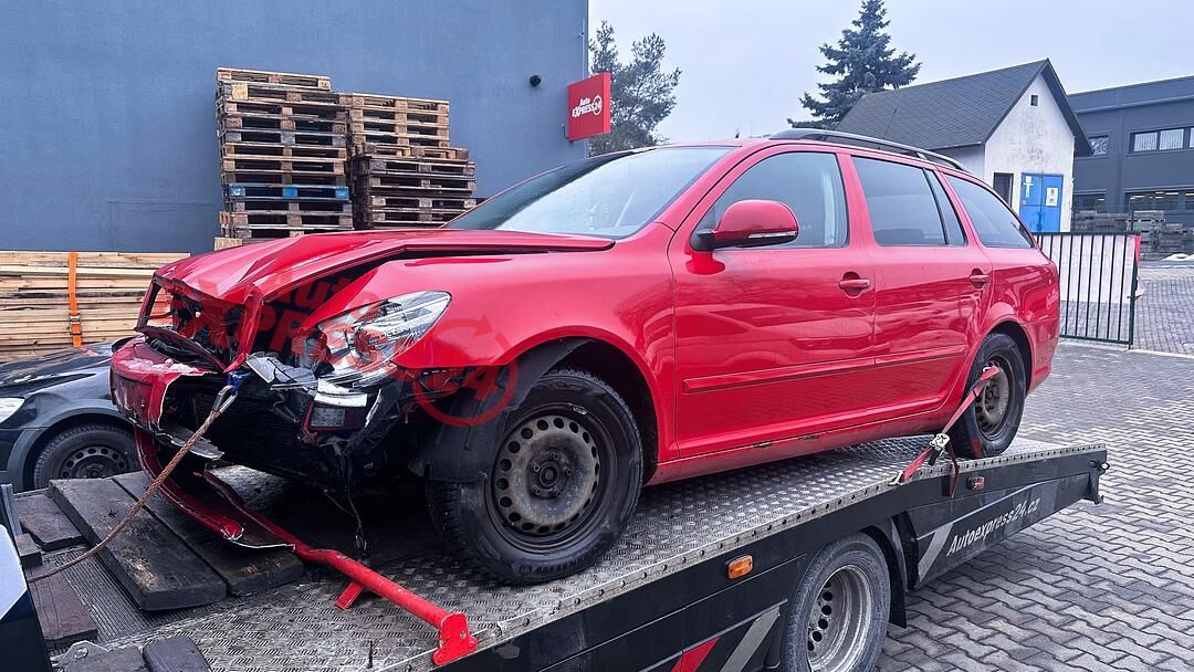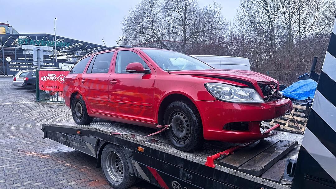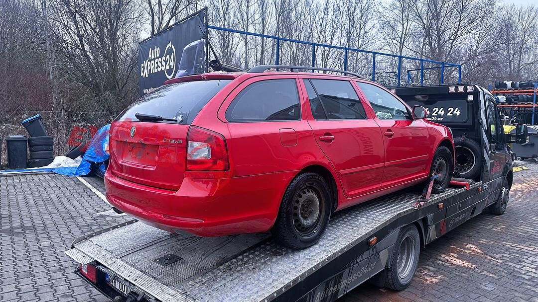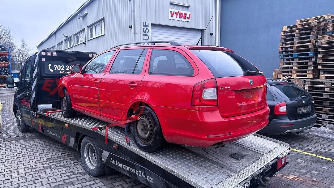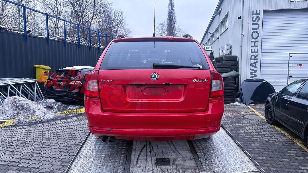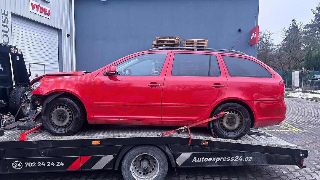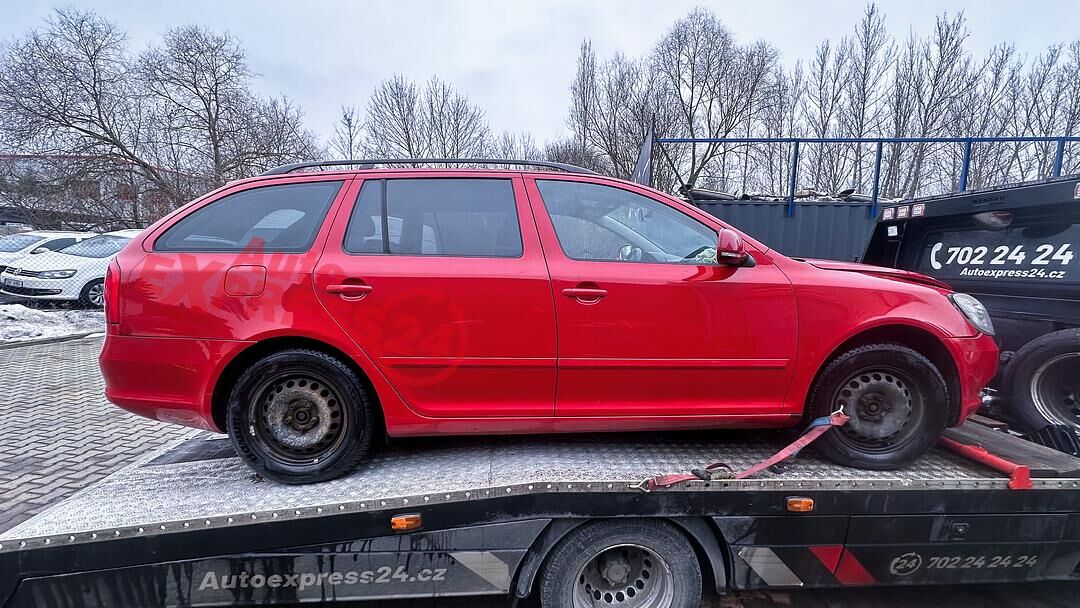 Vůz na náhradní díly Škoda Octavia 2 facelift kombi r.v. 2010 červená barva kód barvy LF3K 8151 8T8T benzínový motor 1.8TSI 118KW kód motoru CDA CDAA šestistupňová manuální převodovka pro pohon všech kol 4x4 4Motion kód převodovky LHC kód haldexu KMC ...