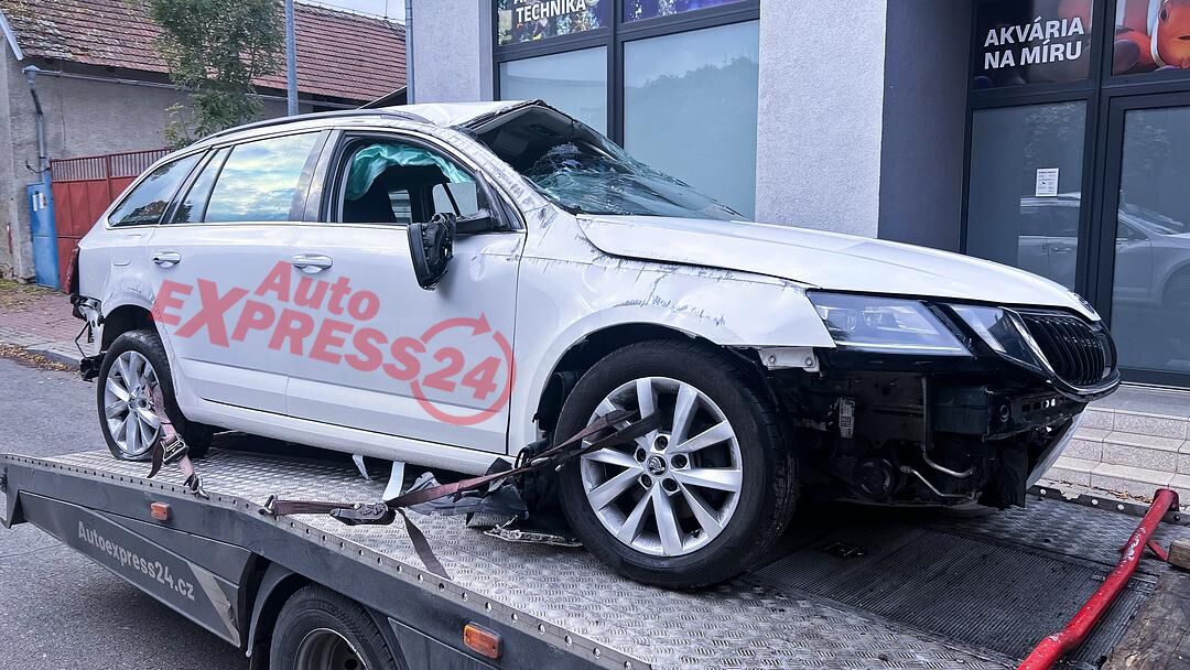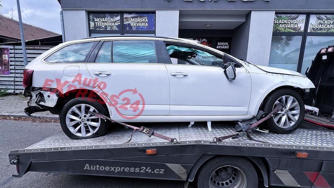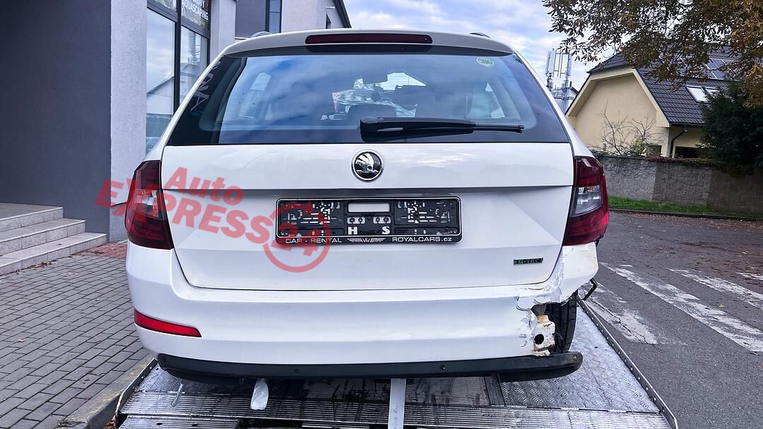 Vůz na náhradní díly Škoda Octavia 3 facelift kombi r.v. 2018 bílá barva kód barvy LF9E 1026 9P9P benzínový motor 1.4TSI 81KW CNG kód motoru CPW CPWA šestistupňová manuální převodovka s funkcí START - STOP kód převodovky SEH