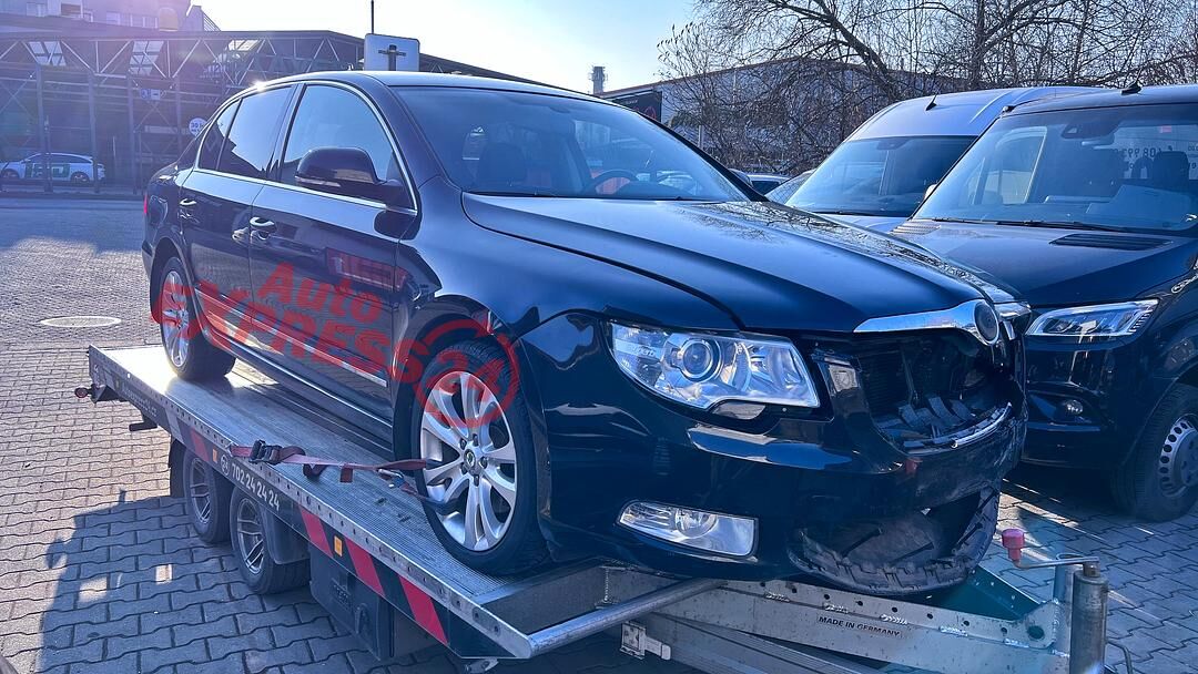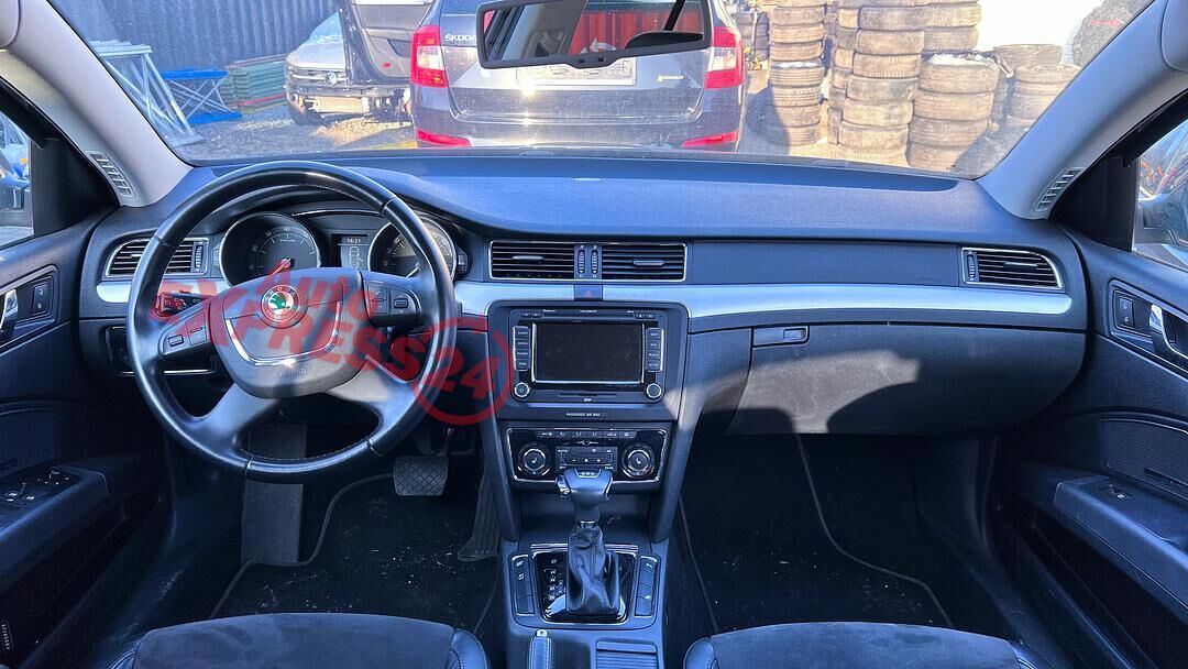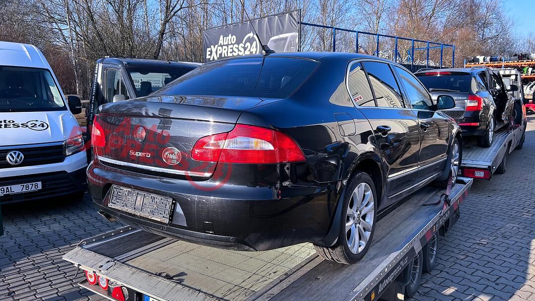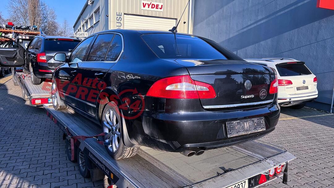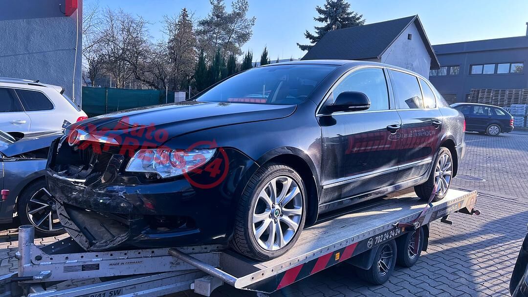 Vůz na náhradní díly Škoda Superb 2 sedan r.v. 2010 černá metalíza kód barvy LF9R 9910 1Z1Z benzínový motor 1.8TFSI 118KW kód motoru CDA CDAA sedmistupňová automatická dvouspojková DSG převodovka kód převodovky LSS