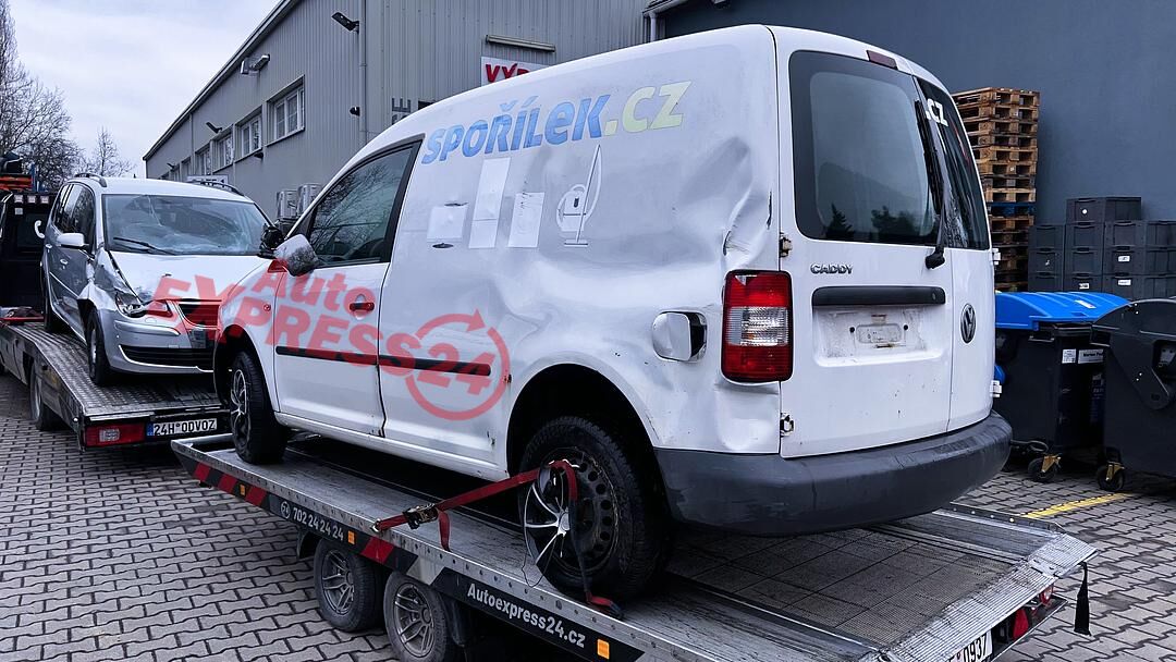 Vůz na náhradní díly VW Caddy 2K skříňový vůz r.v. 2009 bílá barva kód barvy LB9A naftový motor 2.0SDI 51KW 8V kód motoru BST pětistupňová manuální převodovka kód převodovky JJS