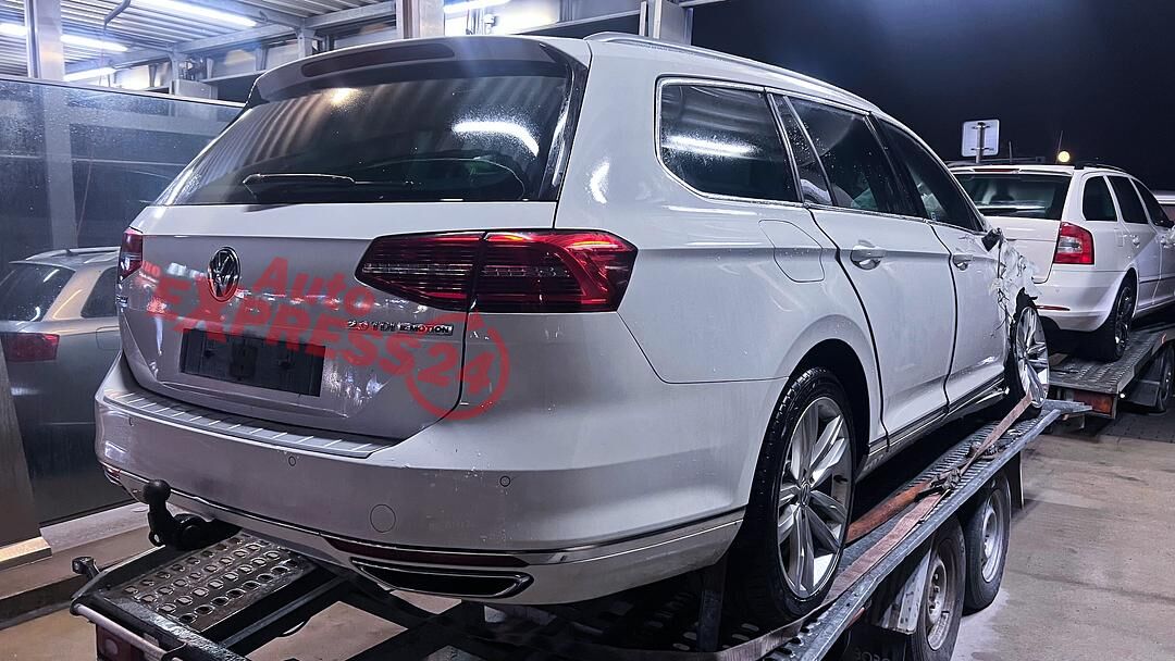 Vůz na náhradní díly VW Passat B8 kombi r.v. 2016 bílá metalíza kód barvy LC9A naftový motor 2.0TDI 176KW commonrail s DPF kód motoru CUA CUAA sedmistupňová automatická převodovka s funkcí START - STOP pro pohon všech kok 4x4 4motion kód převodovky RCG ...