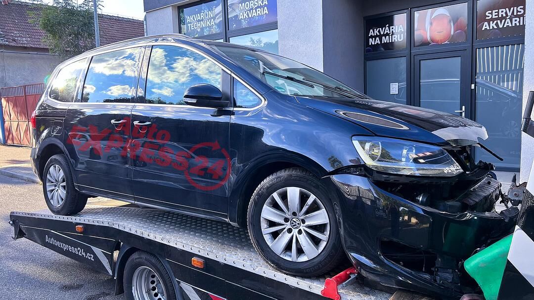 Vůz na náhradní díly VW Sharan 7N r.v. 2015 černá metalíza kód barvy LC9X naftový motor 2.0TDI 103KW 16V commonrail s DPF kód motoru CFF CFFB šestistupňová manuální převodovka s funkcí START - STOP kód převodovky NFZ
