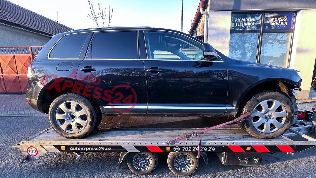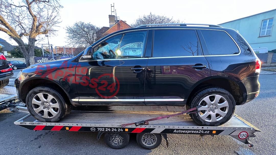 Vůz na náhradní díly VW Touareg 7L facelift r.v. 2009 černá metalíza kód barvy LC9Z naftový šestiválcový motor 3.0TDI 176KW V6 commonrail s DPF kód motoru CAS CASA šestistupňová automatická převodovka pro pohon všech kol 4Motion 4x4 kód převodovky KMB kód haldexu FKU HLW