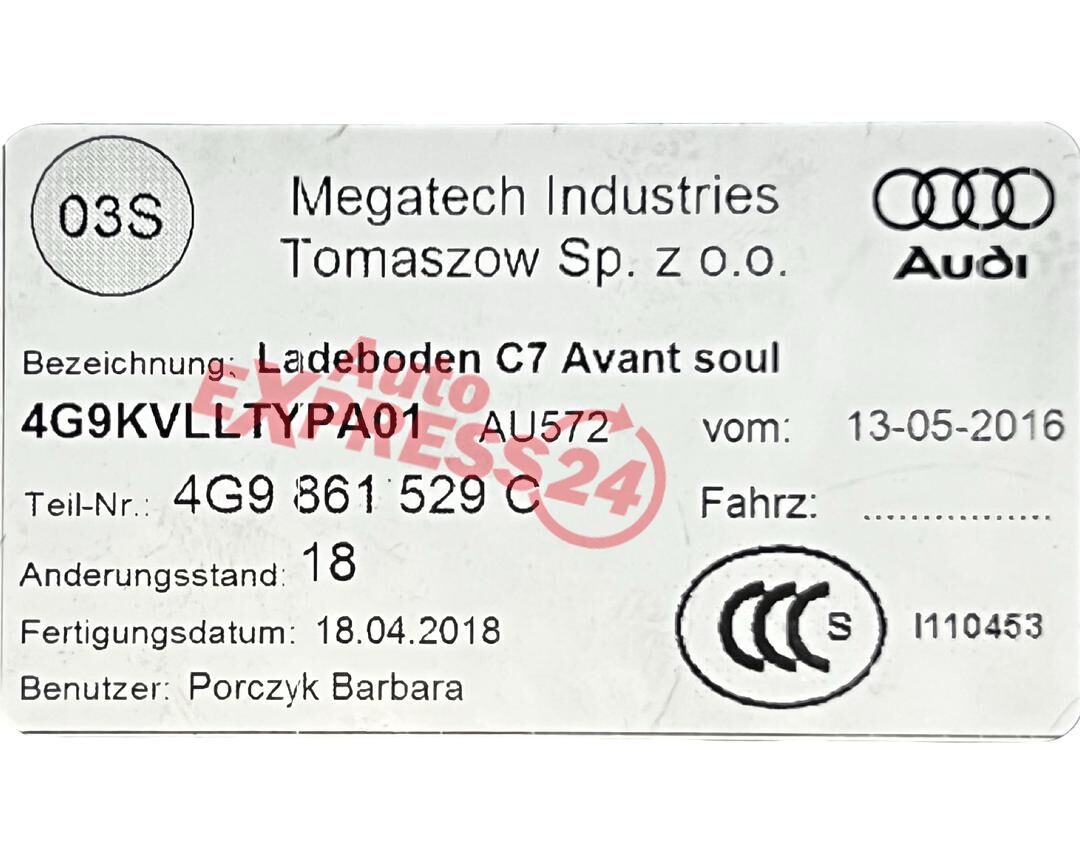 Audi A6 4G facelift S-Line avant r.v. 2018 podlaha kufru 4G9861529C
