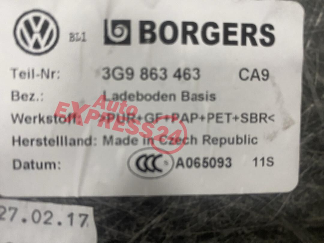 Podlaha kufru černá barva kód barvy CA9 z vozu VW Passat B8 kombi r.v. 2017