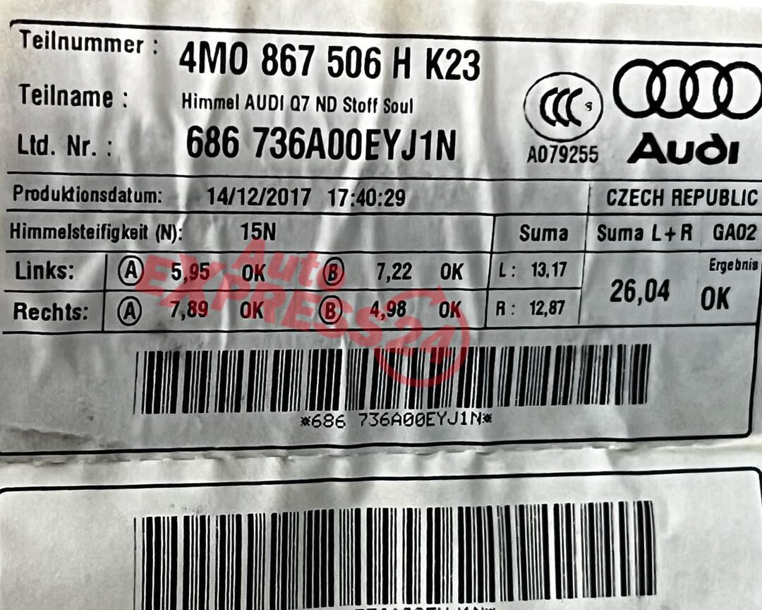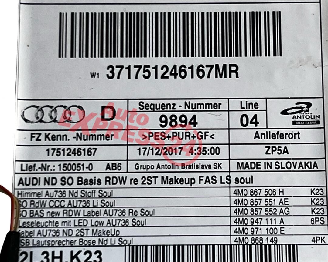 Audi SQ7 4M r.v. 2018 černá stropnice 4M0867506H 4M0867506H