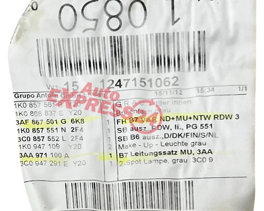 VW Passat B7 kombi r.v. 2013 stropnice 3AF867501G
