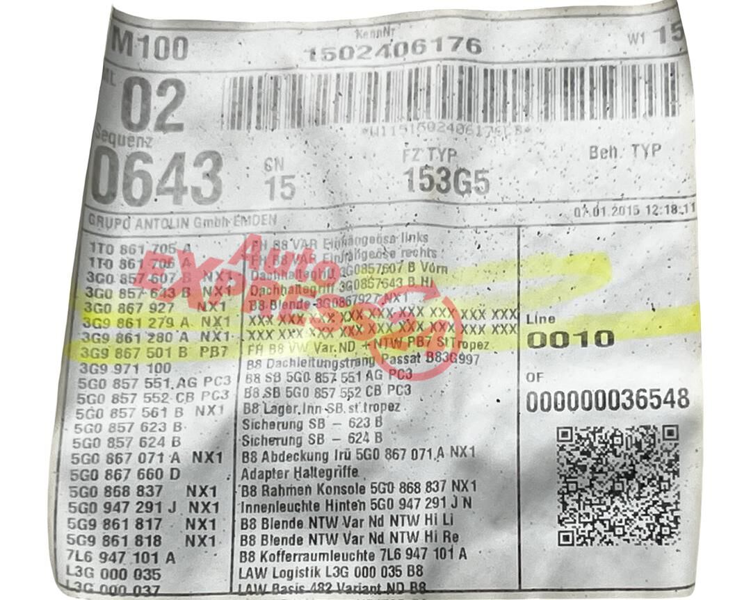 VW Passat B8 kombi r.v. 2015 stropnice