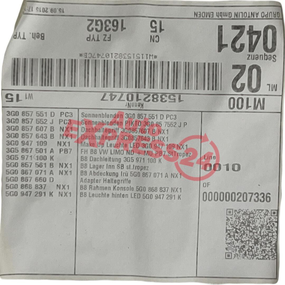 Panel stropu stropnice bílá barva St.Tropez kód barvy PB7 z vozu VW Passat B8 sedan r.v. 2016
