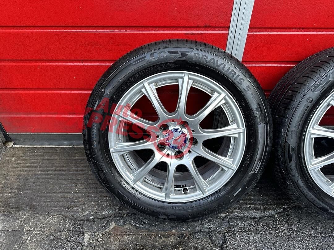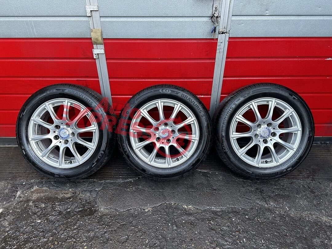 3 x original ALU kola Mercedes rozměr 16" 7J ET49 obuté na letních pneu o rozměru 205/55/R16