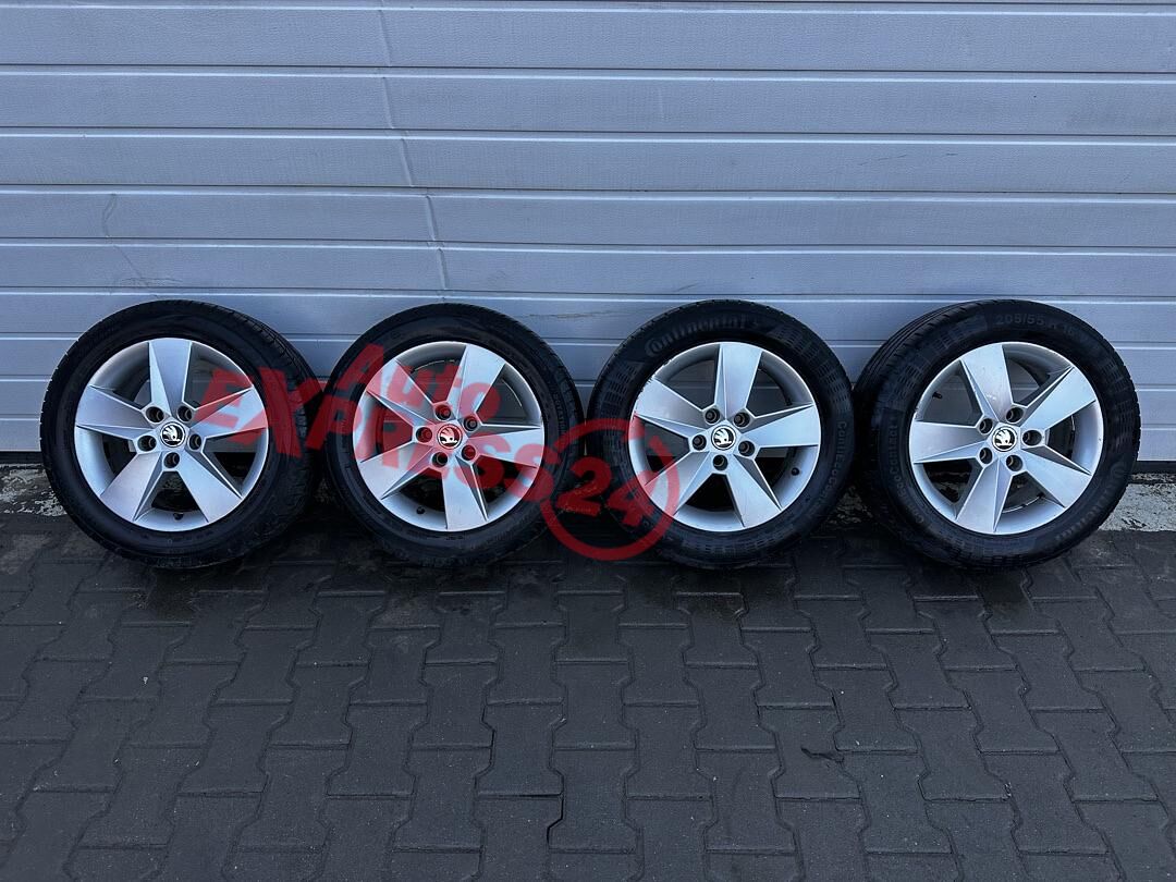 Original ALU kola Škoda Ilias z vozu Škoda Octavia 3 kombi r.v. 2015 rozměr 16" 6,5J ET46 obuté na letních pneu 2x Continental a 2x Fortune o rozměru 205/55/R16