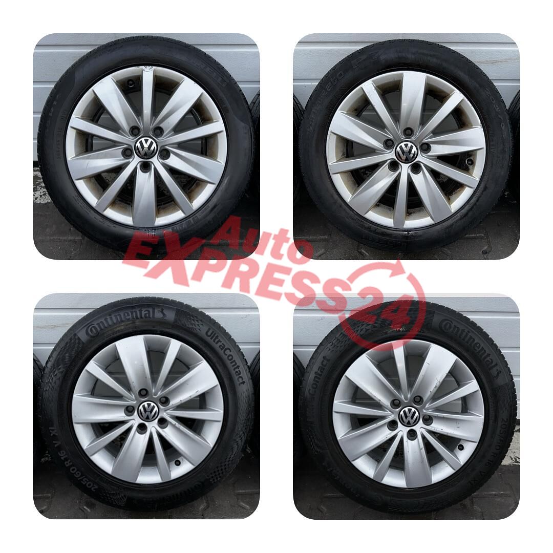Original ALU kola VW Perugia z vozu VW Passat B7 kombi r.v. 2013 rozměr 16" 7J ET45 obuté na letních pneu 2x Continental 2x Pirelli o rozměru 205/60/R16