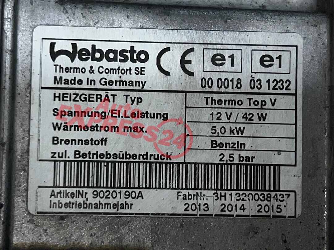 Webasto benzínové přídavné topení z vozu VW Golf 6 Plus r.v. 2014 benzínový motor 1.2TSI 77KW kód motoru CBZ CBZB
