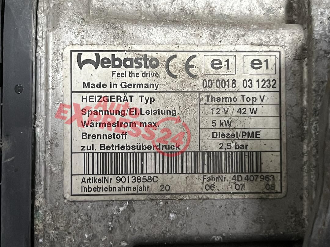 Webasto naftové nezávislé přídavné topení stacionární topení z vozu VW Touran 1T2 facelift r.v. 2007 naftový motor 2.0TDI 103KW 8V s DPF kód motoru BMM
