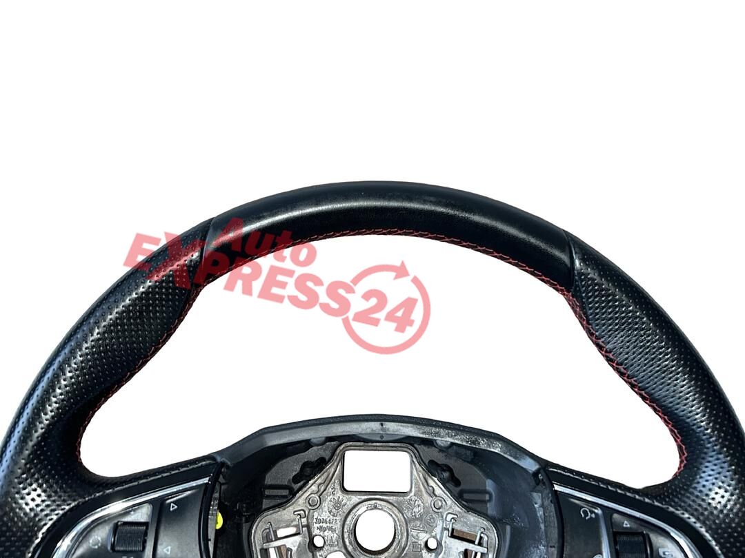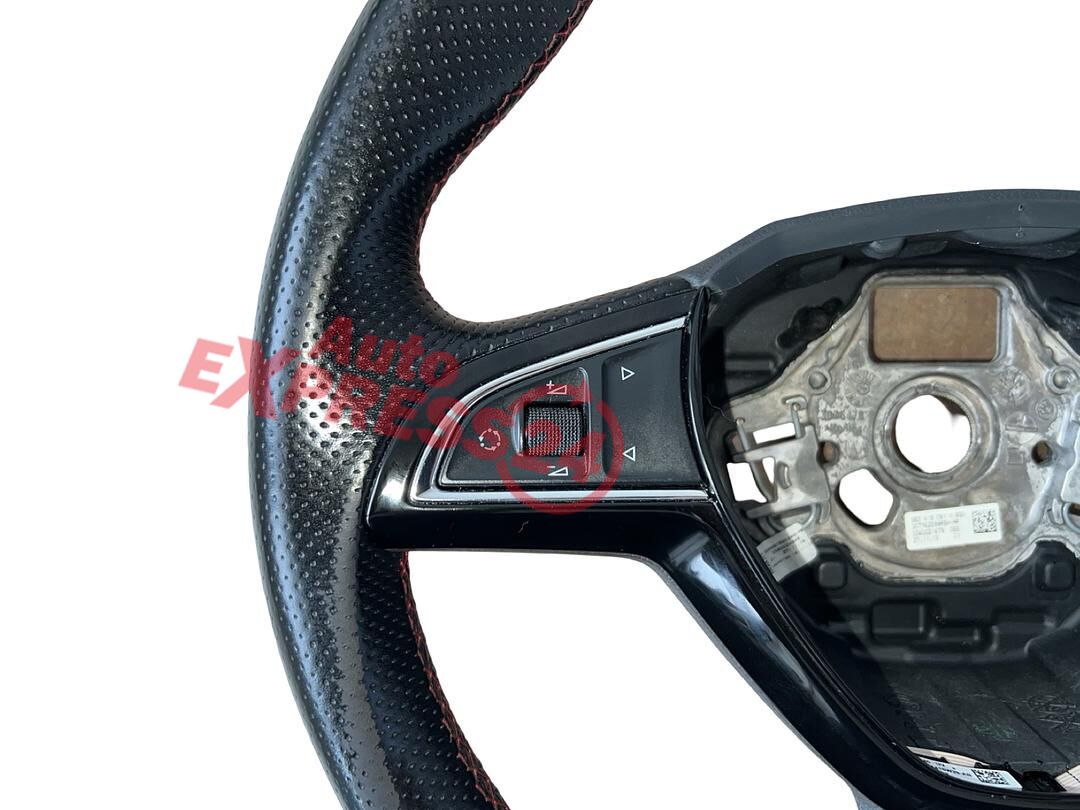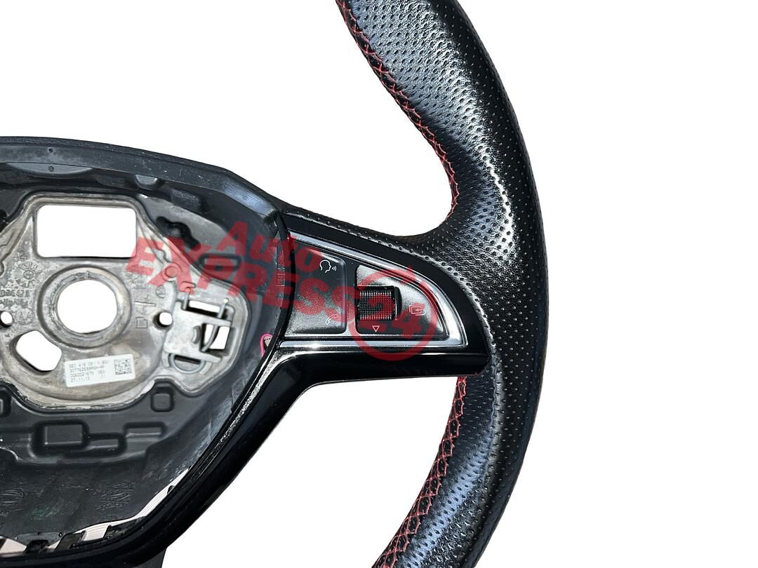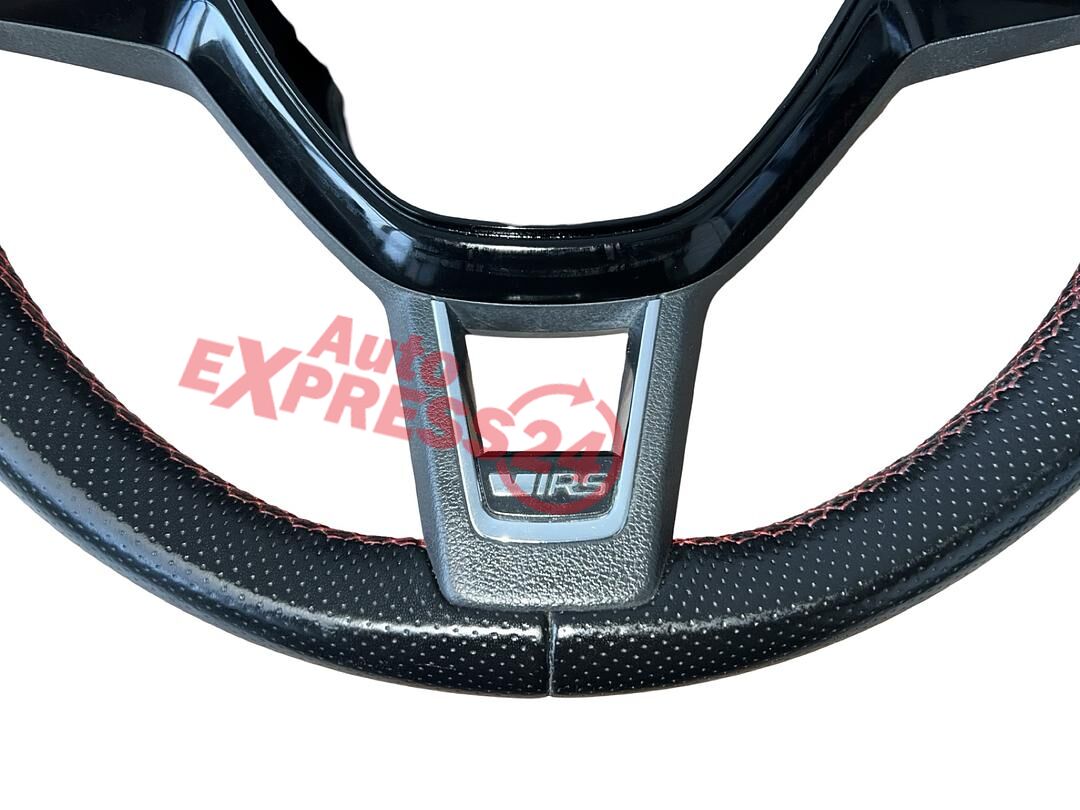 Tříramenný multifunkční volant černá perforovaná kůže s červeným prošitím z vozu Škoda Octavia 3 RS r.v. 2014