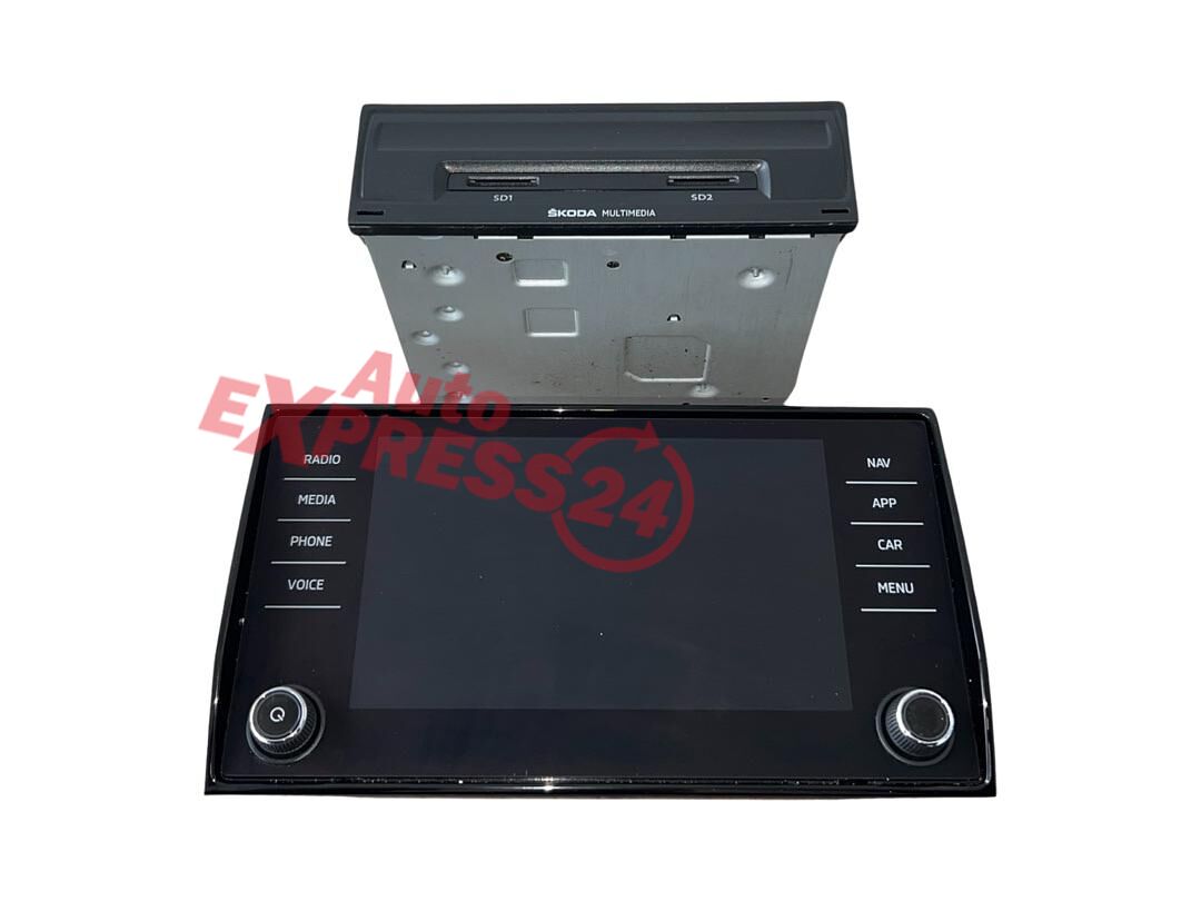 LCD panel navigace displej s obrazovkou Touch-Screen Amundsen + jednotka ovládací zařízení pro informační elektroniku s radiem, bluetooth a SD/CD jednotkou z vozu Škoda Karoq 6N r.v. 2018