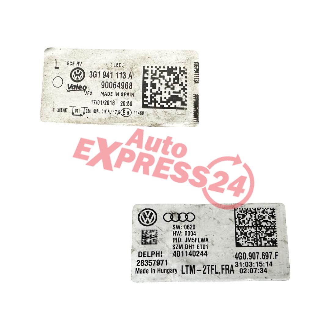 VW Passat B8 kombi r.v. 2015 levé přední světlo Full LED 3G1941113A jednotky 7PP941572A 3G0941329 4G0907697F
