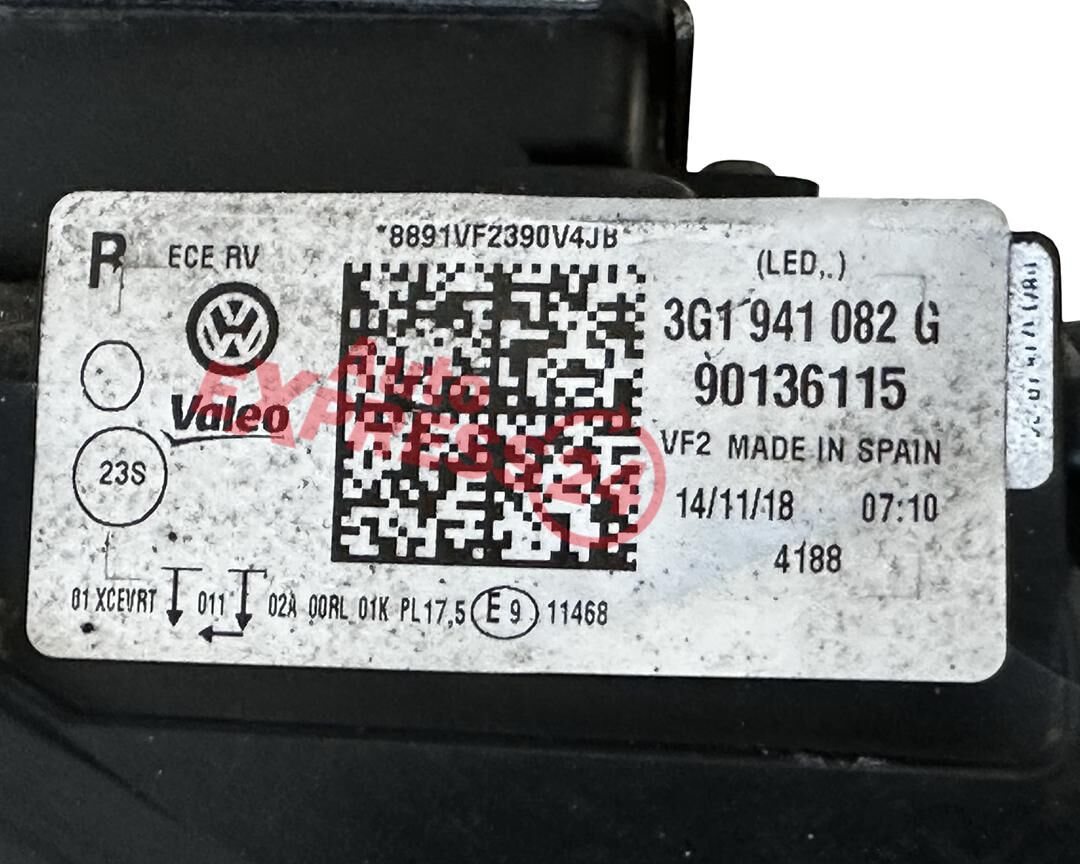 VW Passat B8 kombi r.v. 2019 pravé přední světlo Full LED 3G1941082G jednotky 7PP941572AB 3G0941329 4G0907697F cena bez jednotek