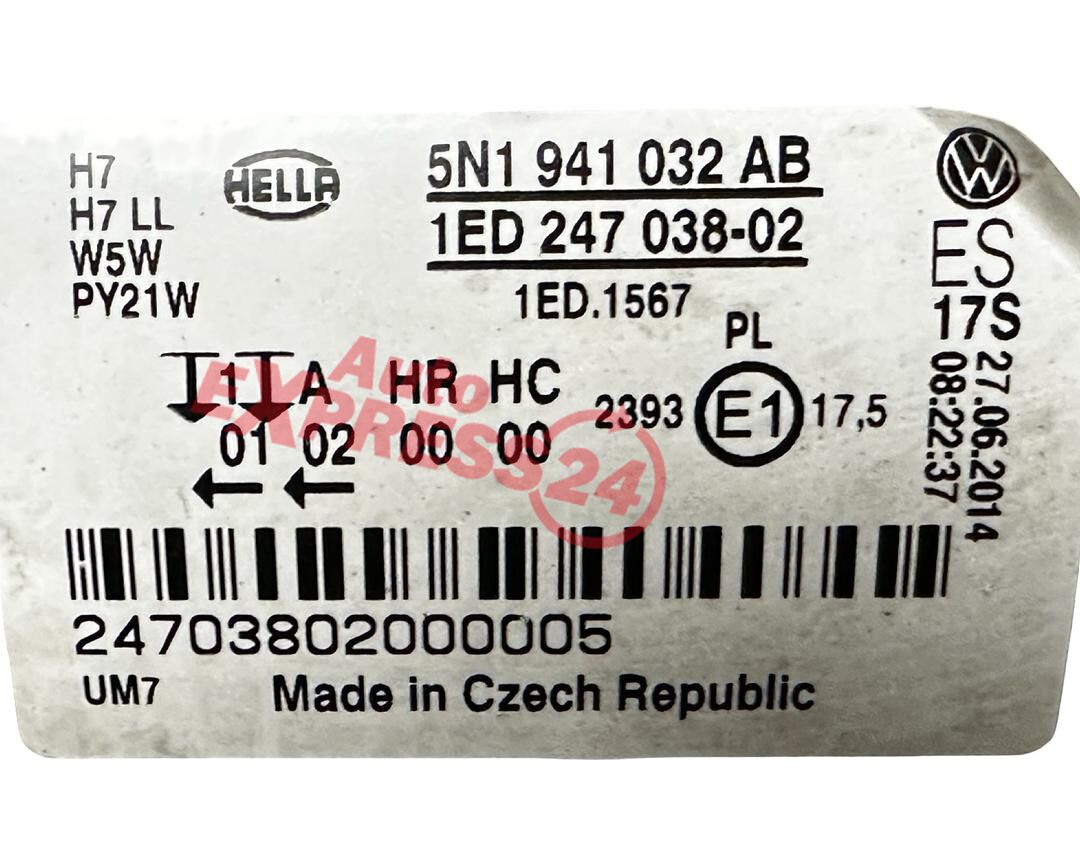 VW Tiguan 5N r.v. 2009 pravé přední světlo halogen 5N1941032AB