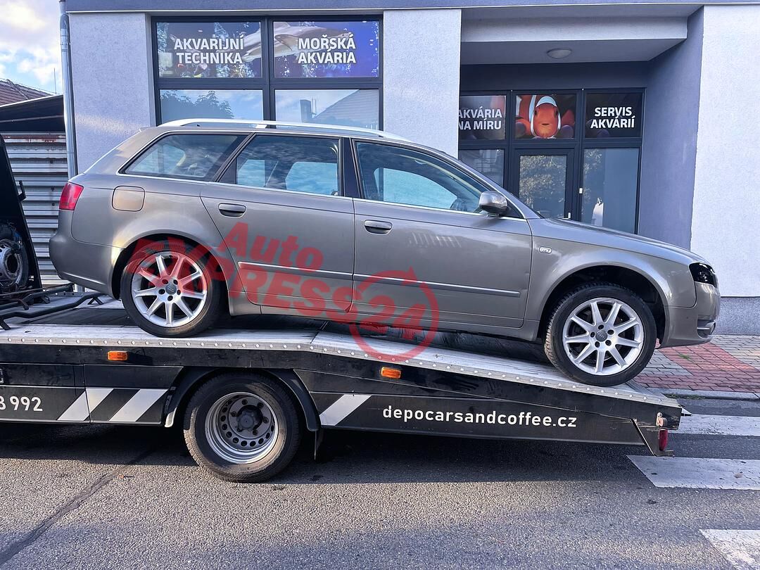 Vůz na náhradní díly Audi A4 B7 8E avant r.v. 2007 zlatošedá metalíza původní lak černá metalíza kód barvy LZ9Y benzínový motor 2.0TFSI 147KW kód motoru BWE šestistupňová automatická převodovka po pohon všech kol quattro 4x4 kód převodovky HYH kód zadního ...
