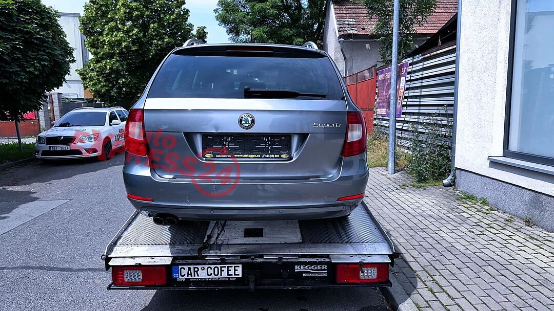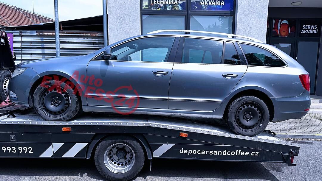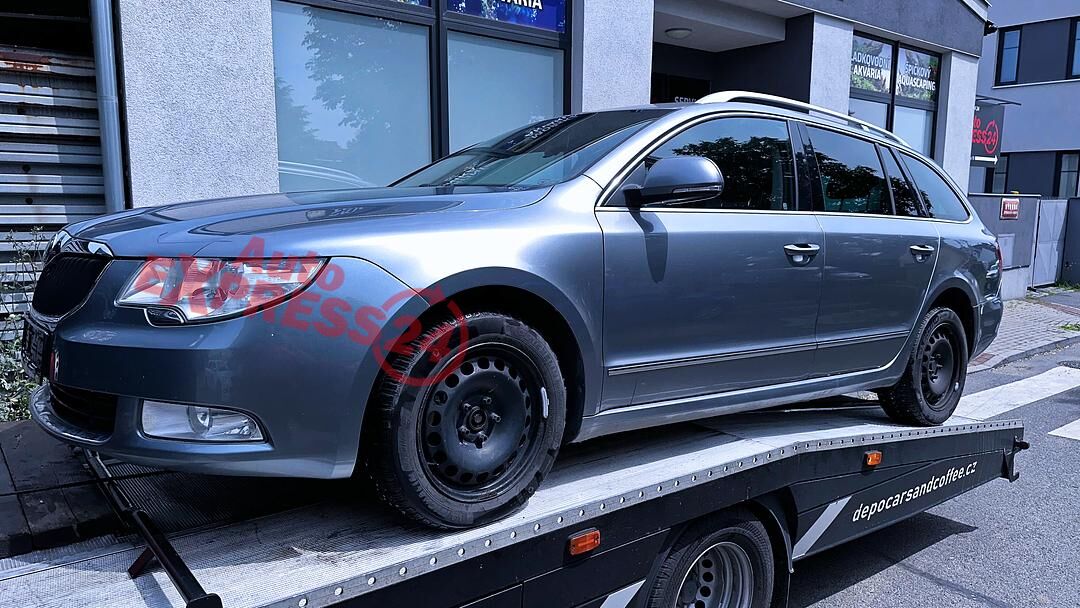 Vůz na náhradní díly Škoda Superb 2 kombi r.v. 2010 šedá metalíza kód barvy LF8L 9157 2G2G naftový motor 2.0TDI 125KW 16V commonrail s DPF kód motoru CBB CBBB šestistupňová automatická dvojspojková DSG převodovka kód převodovky LTD