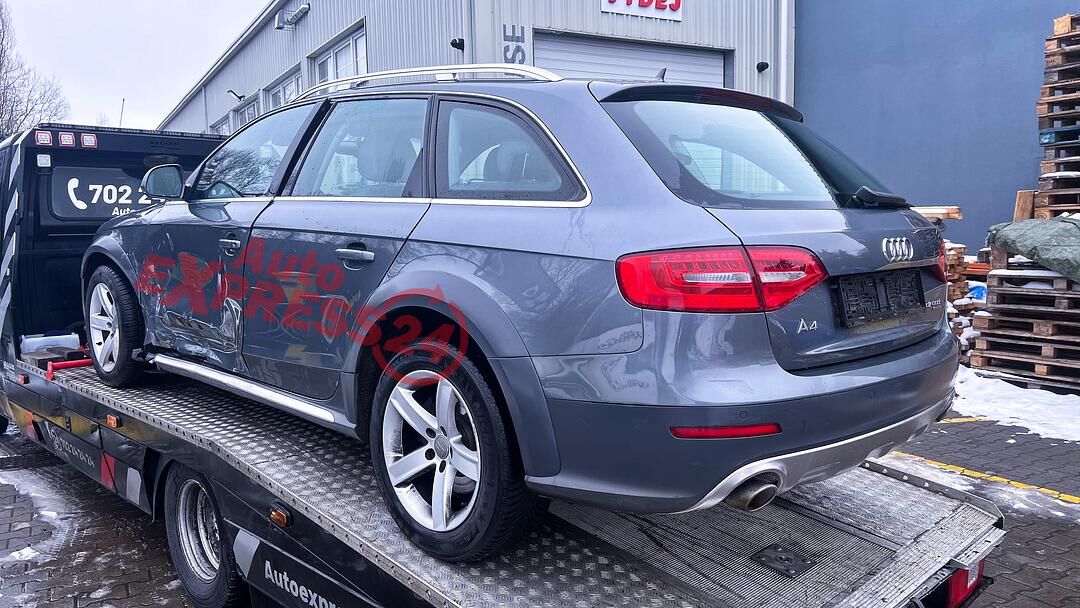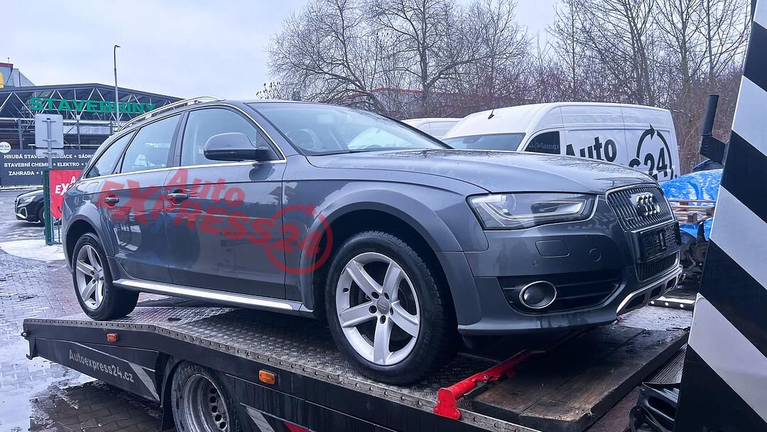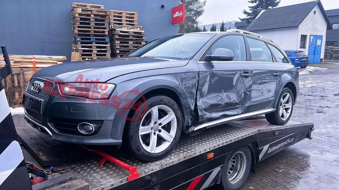 Vůz na náhradní díly Audi A4 B8 facelift allroad r.v. 2013 tmavě šedá metalíza kód barvy LX7R naftový motor 3.0TDI 180KW V6 commonrail s DPF kód motoru CDU CDUC sedmistupňová automatická převodovka S-TRONIC s funkcí START - STOP pro pohon všech kol quattro 4x4 kód převodovky NHP kód diferenciálu MNB