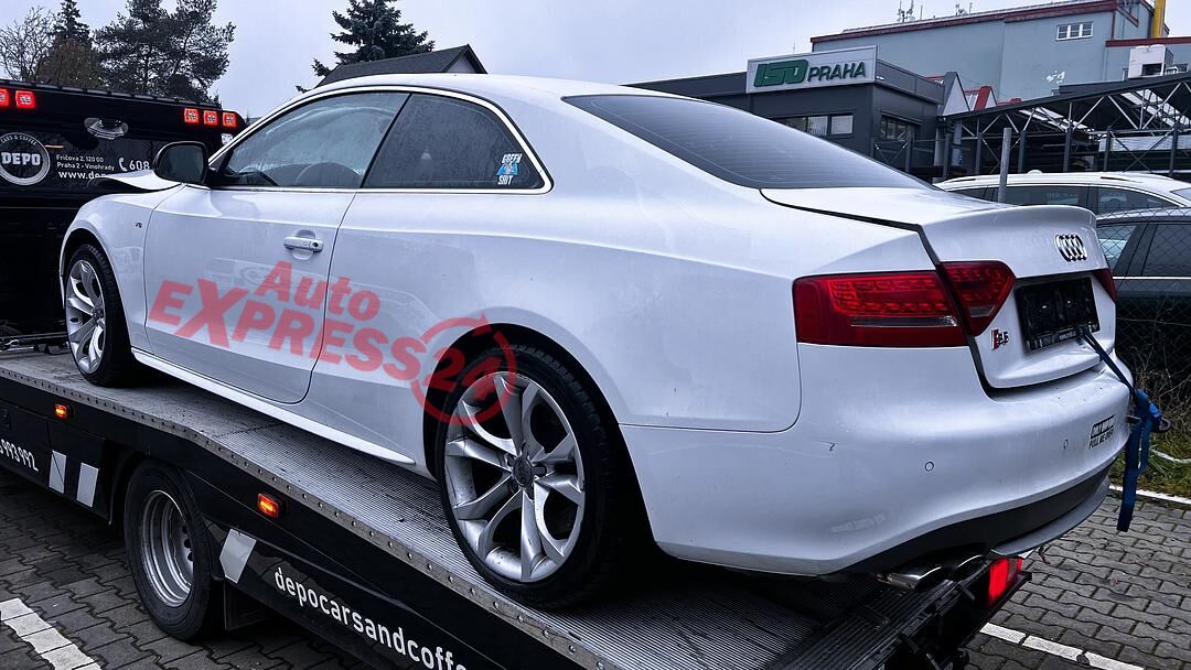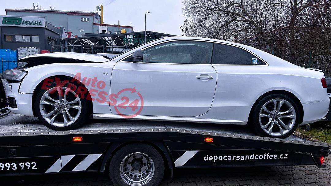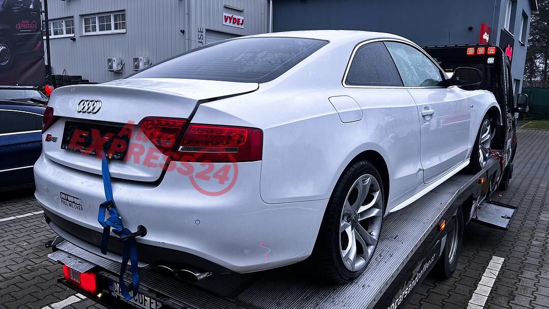 Vůz na náhradní díly Audi S5 8T Coupe r.v. 2009 bílá metalíza kód barvy LY9C benzínový atmosférický osmiválcový motor 4.2FSI 260KW V8 kód motoru CAU CAUA šestistupňová automatická převodovka TIPTRONIC s funkcí START - STOP pro pohon všech kol quattro 4x4 kód převodovky KWR kód zadního diferenciálu KCC LFW
