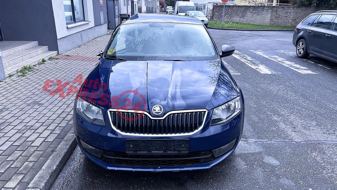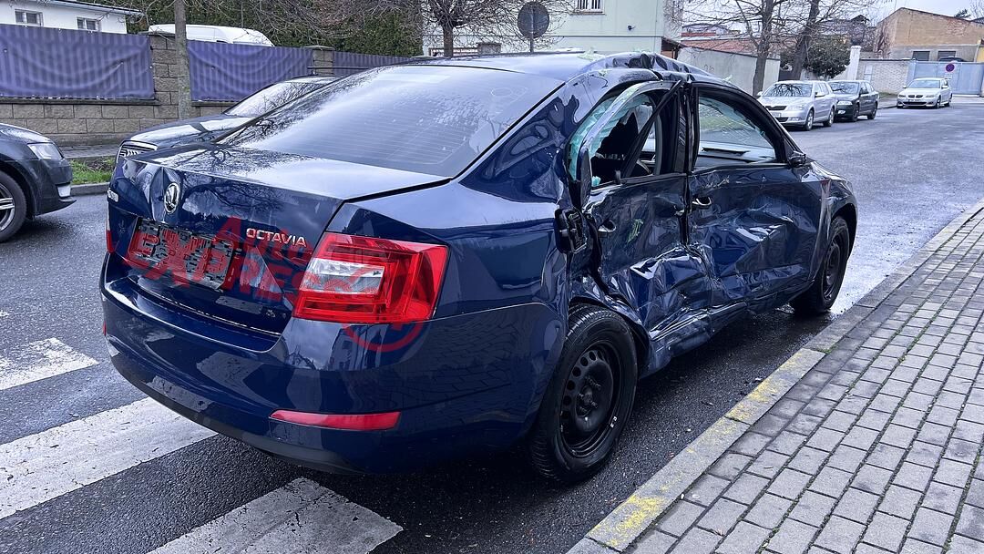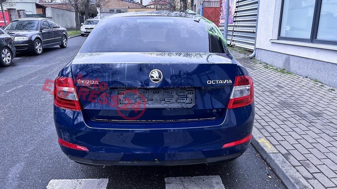 Vůz na náhradní díly Škoda Octavia 3 sedan r.v. 2016 tmavě modrá barva kód barvy LF5A 4711 Z5Z5 benzínový motor 1.4TSI 81KW CNG kód motoru CPW CPWA šestistupňová manuální převodovka s funkcí START - STOP kód převodovky RGN