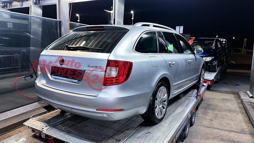 Vůz na náhradní díly Škoda Superb 2 kombi r.v. 2011 stříbrná metalíza barva kód barvy LA7W 9156 8E8E naftový motor 2.0TDI 125KW 16V commonrail s DPF kód motoru CFG CFGB šestistupňová manuální převodovka pro pohon všech kol 4x4 4motion kód převodovky KXY ...
