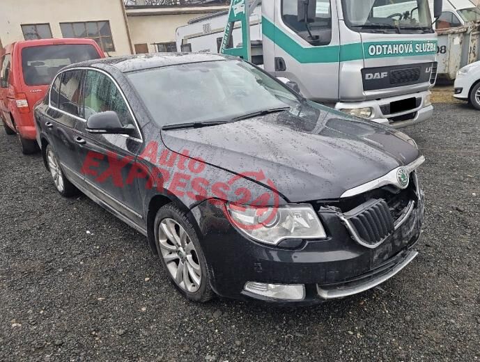 Vůz na náhradní díly Škoda Superb 2 sedan r.v. 2010 černá metalíza kód barvy LF9R 9910 1Z1Z benzínový motor 1.8TFSI 118KW kód motoru CDA CDAA sedmistupňová automatická dvouspojková DSG převodovka kód převodovky LSS