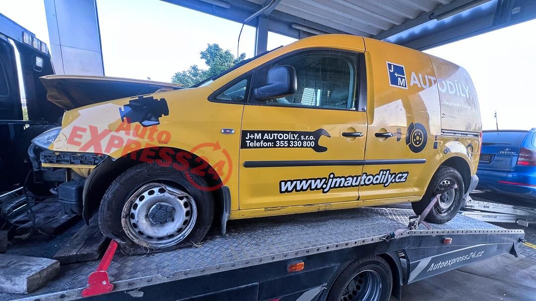 Vůz na náhradní díly VW Caddy 3 2k r.v. 2010 skříňový vůz žlutá barva kód barvy L132 naftový motor 2.0SDI 51KW 8V kód motoru BST pětistupňová manuální převodovka kód převodovky LBU