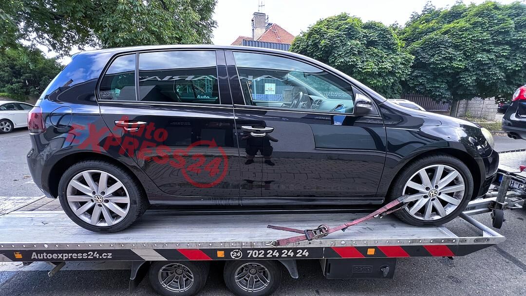 Vůz na náhradní díly VW Golf 6 hatchback r.v. 2009 černá metalíza kód barvy LC9X benzínový motor 1.4TSI 90KW kód motoru CAX CAXA šestistupňová manuální převodovka kód převodovky LHY