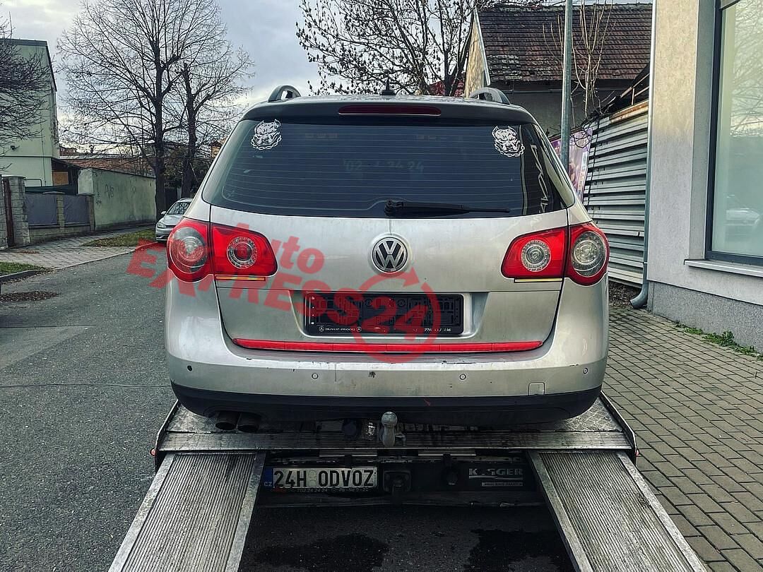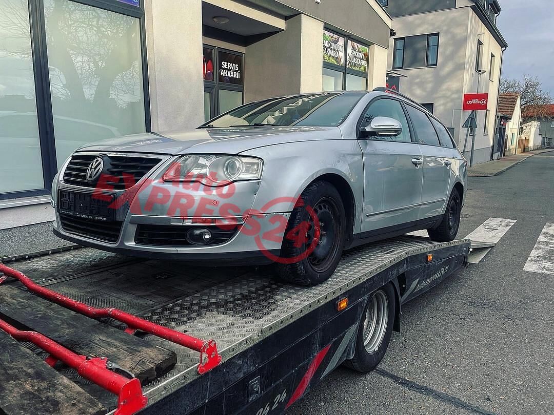 Vůz na náhradní díly VW Passat B6 kombi r.v. 2007 stříbrná metalíza kód barvy LA7W naftový motor 2.0TDI 103KW 8V s DPF kód motoru BMP šestistupňová manuální převodovka pro pohon všech kol 4X4 4Motion kód převodovky JLR kód haldexu HVZ JUX
