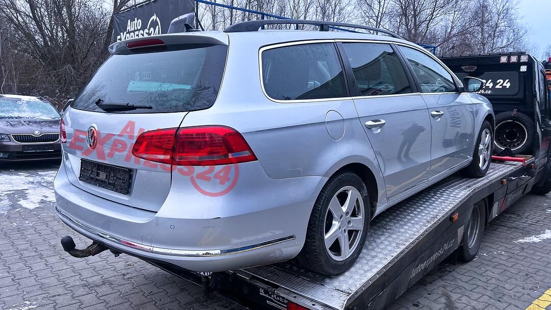 Vůz na náhradní díly VW Passat B7 kombi r.v. 2012 stříbrná metalíza kód barvy LA7W naftový motor 1.6TDI 77KW commonrail s DPF kód motoru CAY CAYC šestistupňová manuální převodovka s funkcí START - STOP kód převodovky MYP