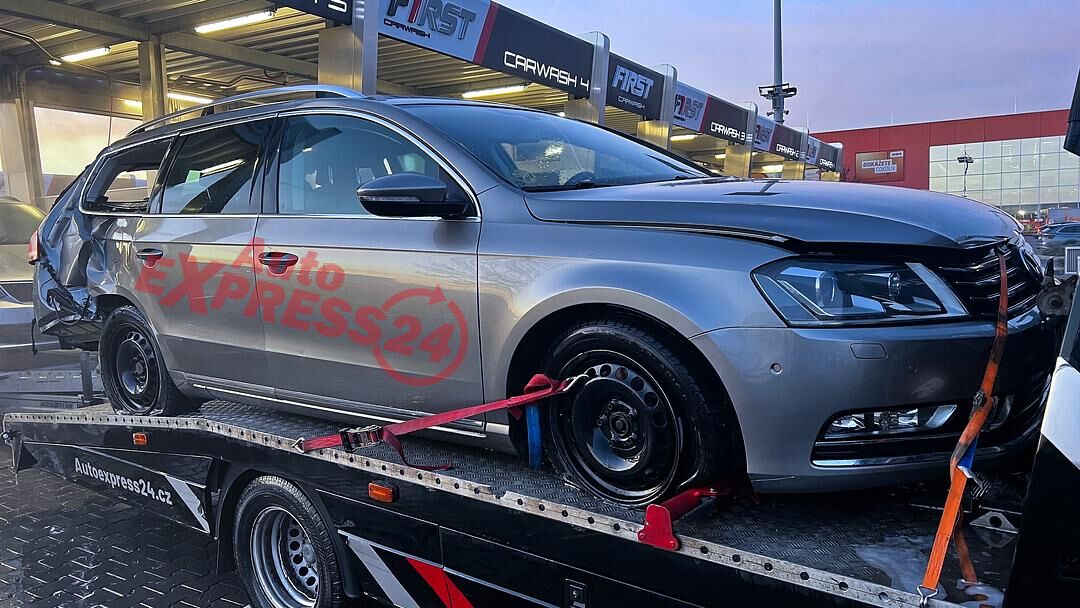 Vůz na náhradní díly VW Passat B7 kombi r.v. 2013 zlatošedá metalíza kód barvy LC8Y naftový motor 2.0TDI 103KW 16 commonrail s DPF kód motoru CFF CFFB šestistupňová manuální převodovka s funkcí START - STOP kód převodovky NFU
