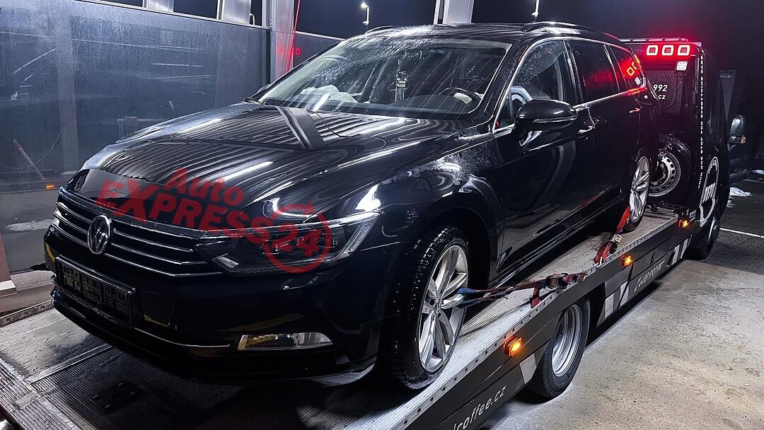 Vůz na náhradní díly VW Passat B8 kombi r.v. 2015 černá metalíza kód barvy LC9X naftový motor 2.0TDI 110KW commonrail s DPF kód motoru CRL CRLB šestistupňová manuální převodovka s funkcí START - STOP kód převodovky QFZ