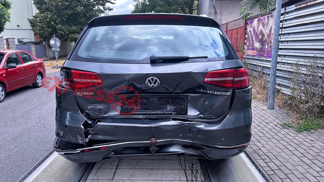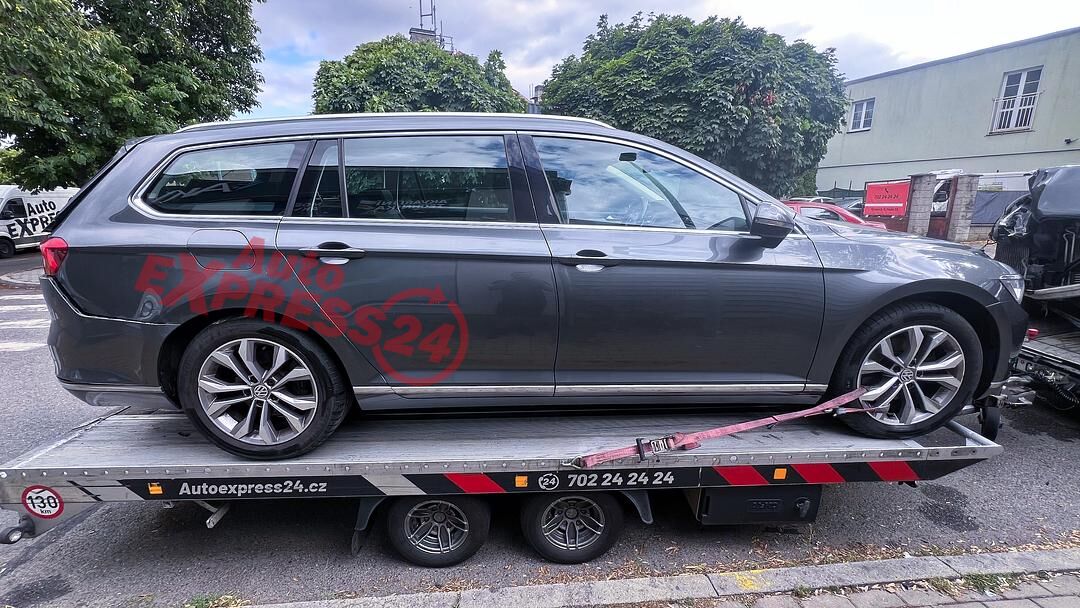 Vůz na náhradní díly VW Passat B8 kombi r.v. 2015 šedá metalíza kód barvy LR7H naftový motor 2.0TDI 110KW commonrail s DPF kód motoru CRL CRLB šestistupňová manuální převodovka s funkcí START - STOP kód převodovky QFZ