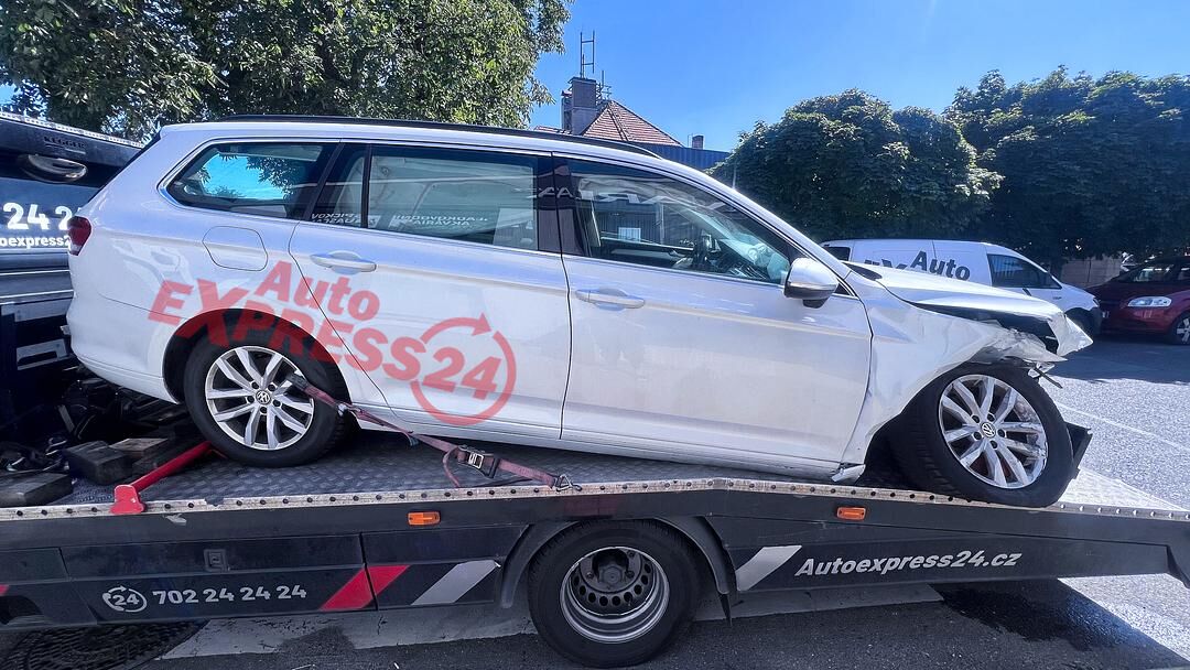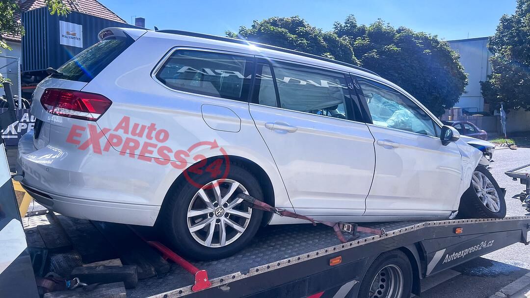 Vůz na náhradní díly VW Passat B8 kombi r.v. 2017 bílá metalíza kód barvy L0K1 naftový motor 2.0TDI 110KW commonrail s DPF kód motoru CRL CRLB šestistupňová manuální převodovka s funkcí START-STOP kód převodovky QFZ