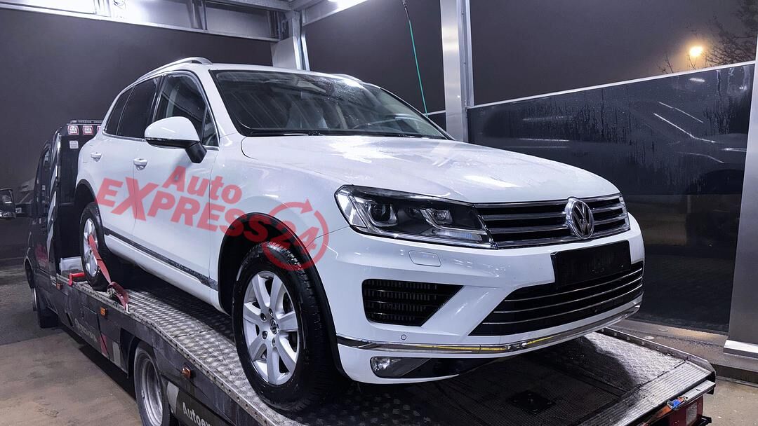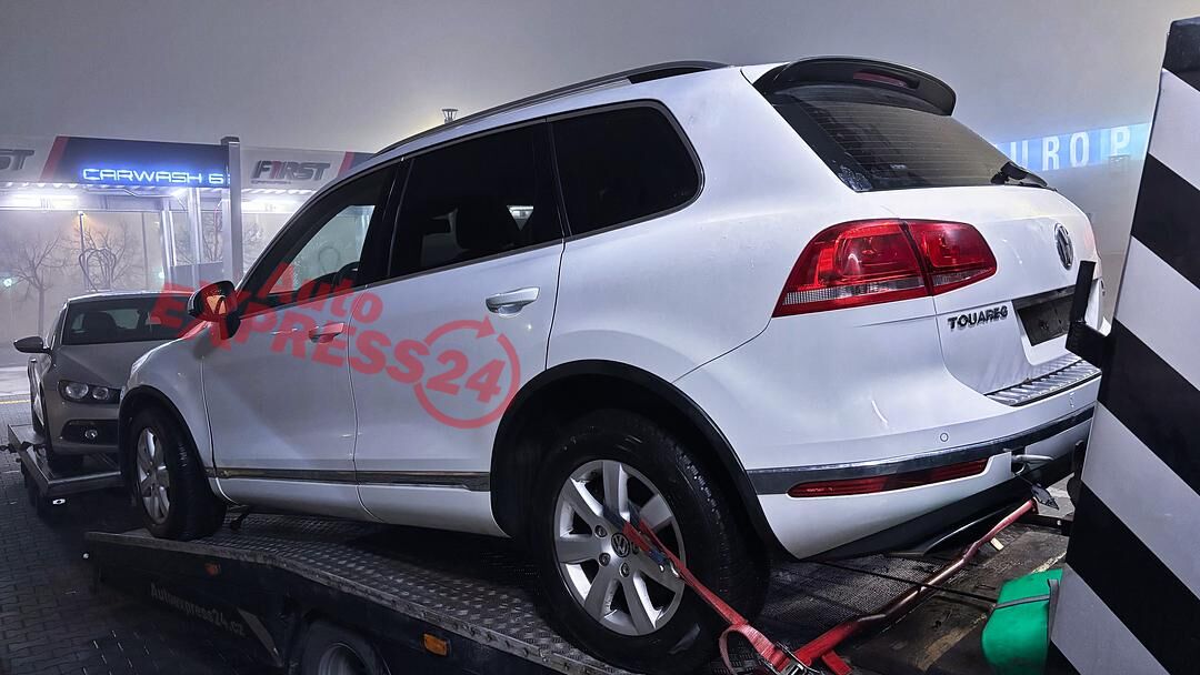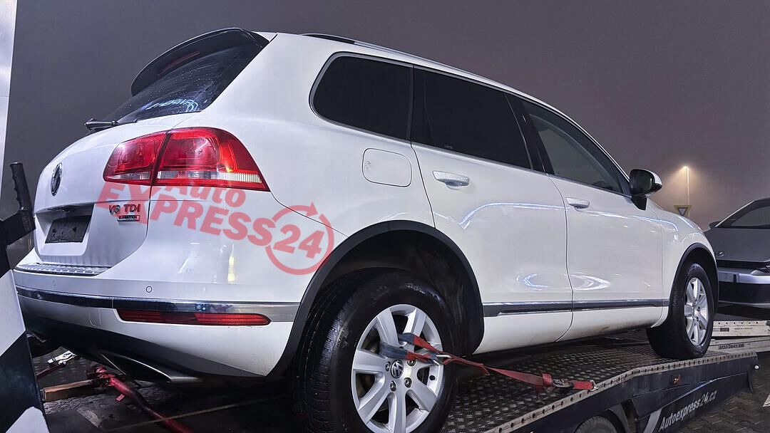Vůz na náhradní díly VW Touareg 7P facelift r.v. 2015 bílá metalíza kód barvy LC9A naftový motor 3.0TDI 193KW commonrail s DPF kód motoru CVV CVVA osmistupňová automatická převodovka s funkcí START - STOP pro pohon všech kol 4x4 4motion kód převodovka PXP kód haldexu MEX RCH RCK RMZ