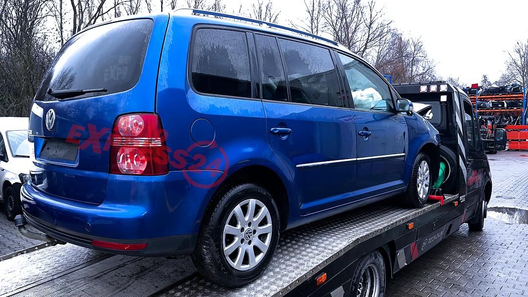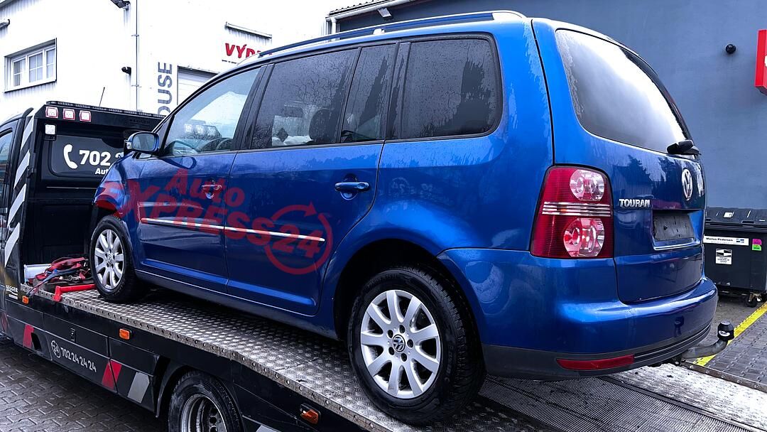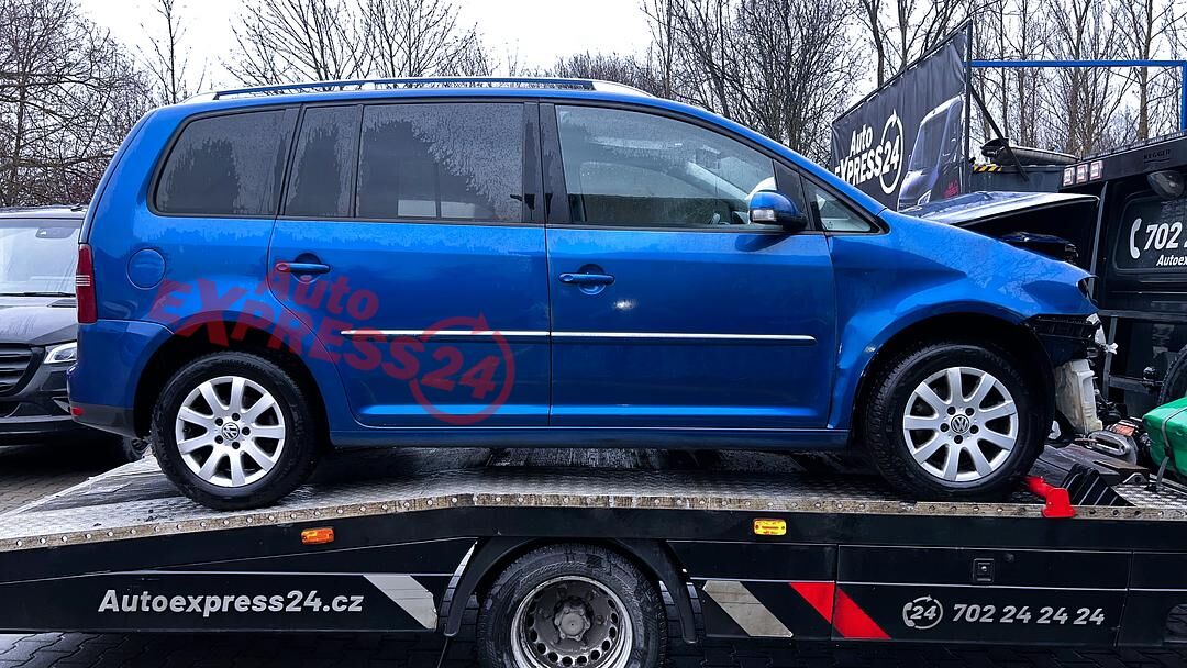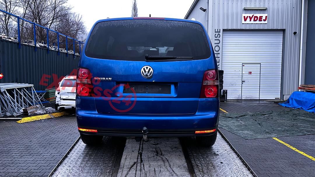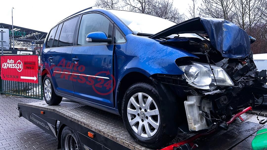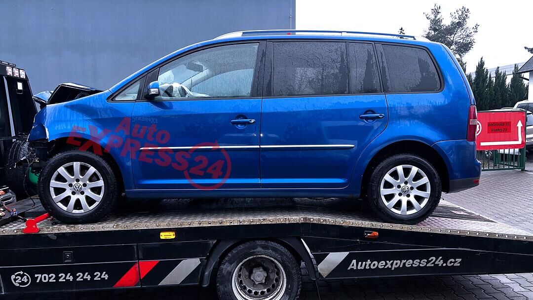 Vůz na náhradní díly VW Touran 1T2 facelift r.v. 2008 modrá metalíza barva kód barvy LC5C benzínový motor 1.4TSI 103KW kód motoru BMY šestistupňová manuální převodovka kód převodovky JXP