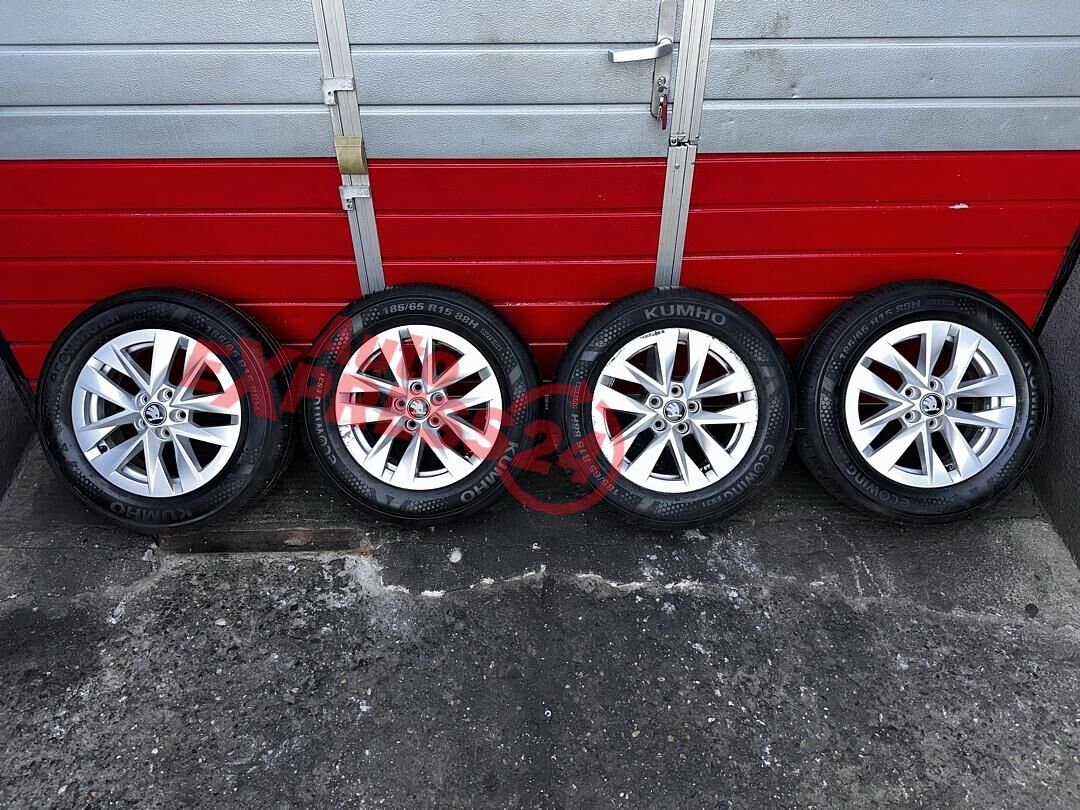 Original ALU kola Škoda z vozu Škoda Fabia 4 r.v. 2025 rozměr disků 15" 5,5J ET40 obuté na letních pneu o rozměru 185/65/R15