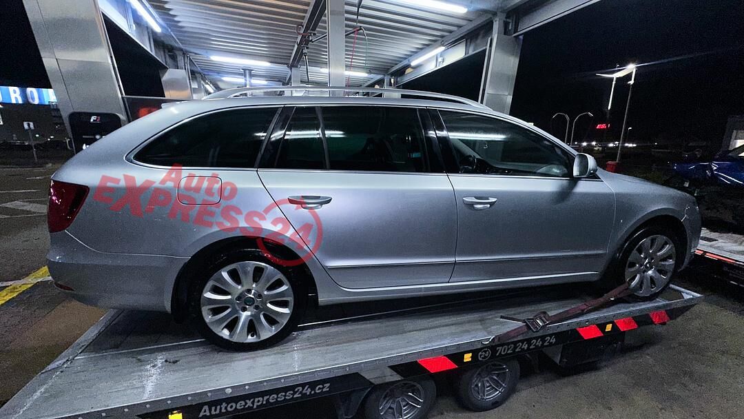 Vůz na náhradní díly Škoda Superb 2 kombi r.v. 2011 stříbrná metalíza barva kód barvy LA7W 9156 8E8E naftový motor 2.0TDI 125KW 16V commonrail s DPF kód motoru CFG CFGB šestistupňová manuální převodovka pro pohon všech kol 4x4 4motion kód převodovky KXY ...