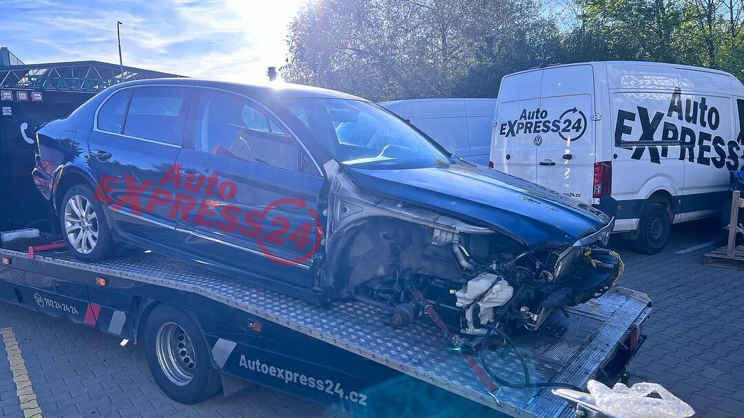 Vůz na náhradní díly Škoda Superb 2 sedan r.v. 2011 černá metalíza kód barvy LF9R 9910 1Z1Z benzínový motor 3.6FSI V6 191KW kód motoru CDV CDVA šestistupňová automatická dvouspojková DSG převodovka pro pohon všech kol 4x4 4Motion kód převodovky MTW číslo haldexu 0BR525010B