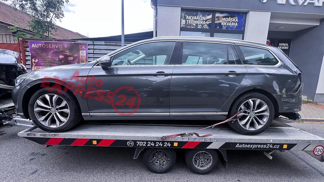Vůz na náhradní díly VW Passat B8 kombi r.v. 2015 šedá metalíza kód barvy LR7H naftový motor 2.0TDI 110KW commonrail s DPF kód motoru CRL CRLB šestistupňová manuální převodovka s funkcí START - STOP kód převodovky QFZ