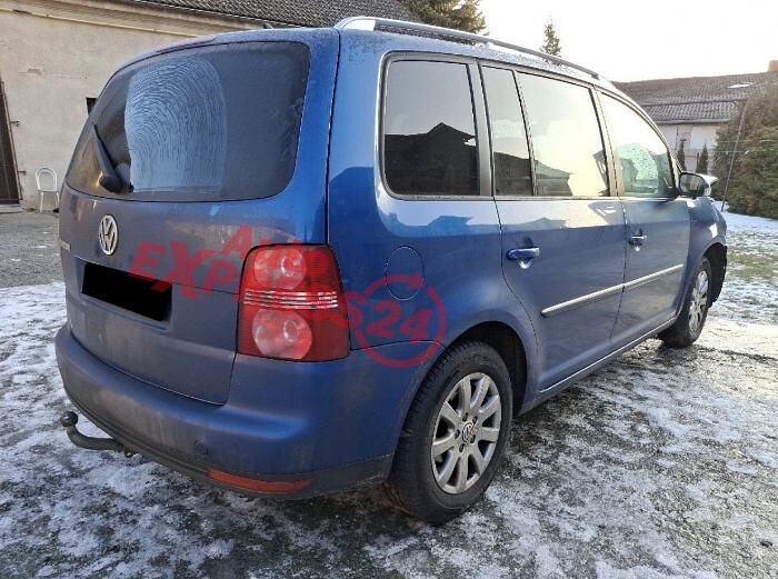 Vůz na náhradní díly VW Touran 1T2 facelift r.v. 2008 modrá metalíza barva kód barvy LC5C benzínový motor 1.4TSI 103KW kód motoru BMY šestistupňová manuální převodovka kód převodovky JXP